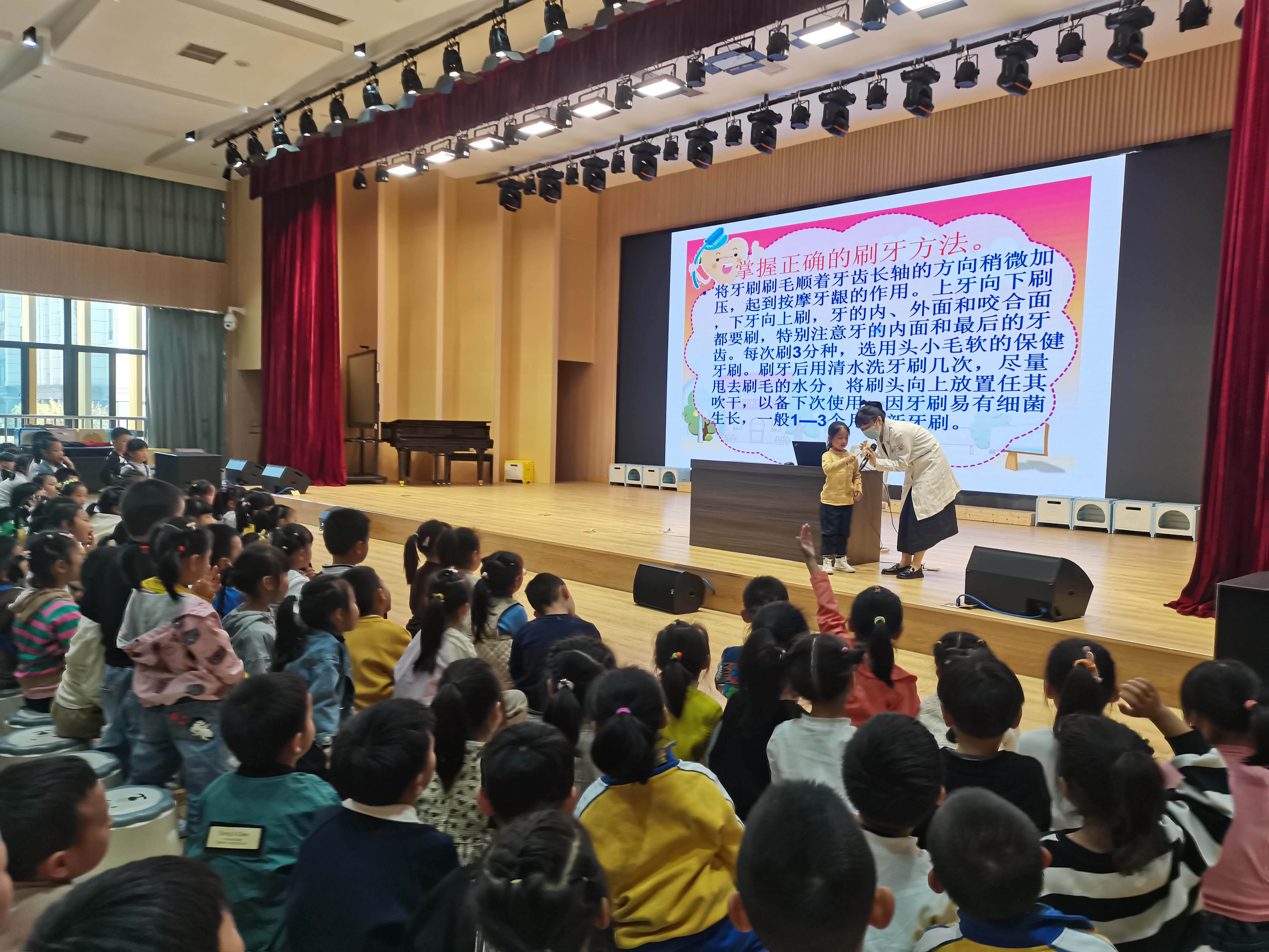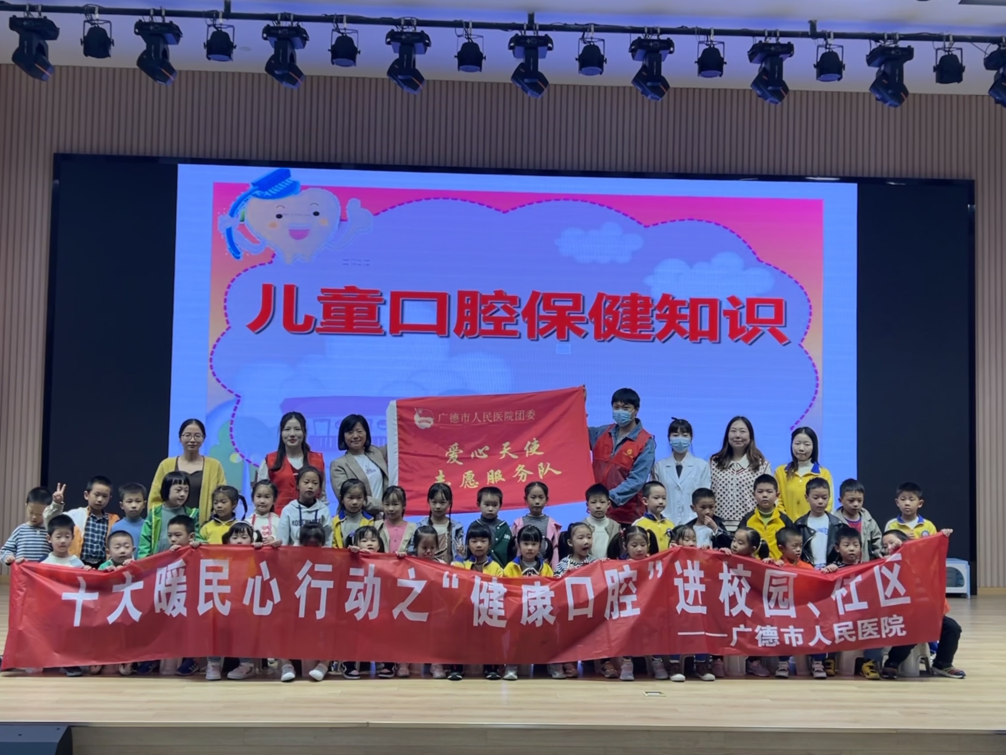 为深入落实暖民心行动,培养幼儿爱护牙齿、注意口腔健康的良好习惯,10月25日下午,我院医务科、团委组织医护志愿者前往广德市中心幼儿园,开展“健康口腔”进校园活动。