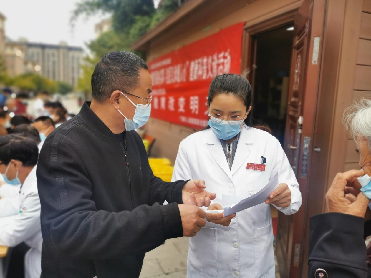 在社区工作人员的大力宣传和精心组织下,社区居民纷纷携带相关体检与就诊资料,佩戴口罩,有序到活动现场咨询与就诊。医务人员们现场为居民检查,耐心解答居民的健康问题,志愿者们为居民们测量血压、血糖。