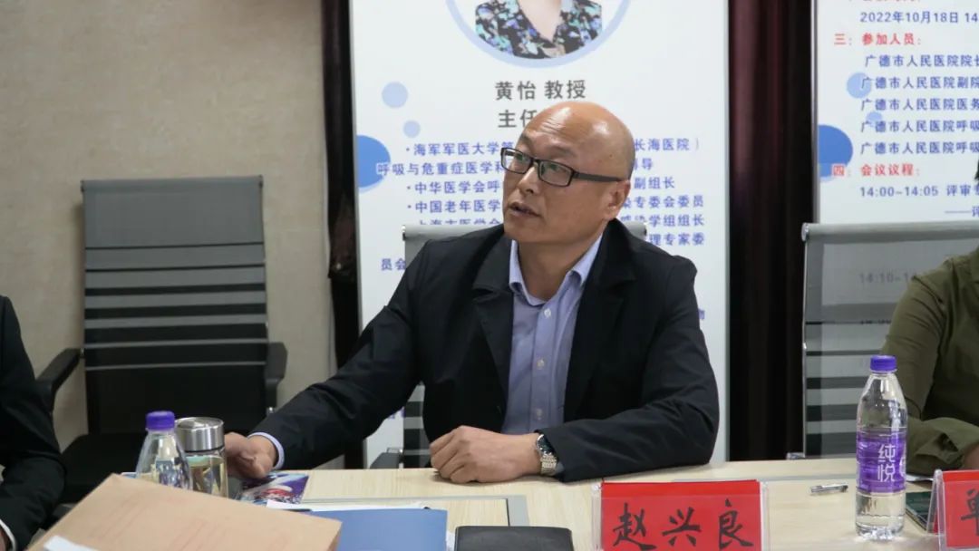 呼吸与危重症医学科主任赵兴良做了PCCM规范化建设工作开展情况汇报,他详细介绍了我院呼吸与危重症医学科在医疗服务能力、科室管理、科研教学和人才培养等方面的具体情况。汇报后,两位评审专家远程详细询问了科室建设的具体情况。