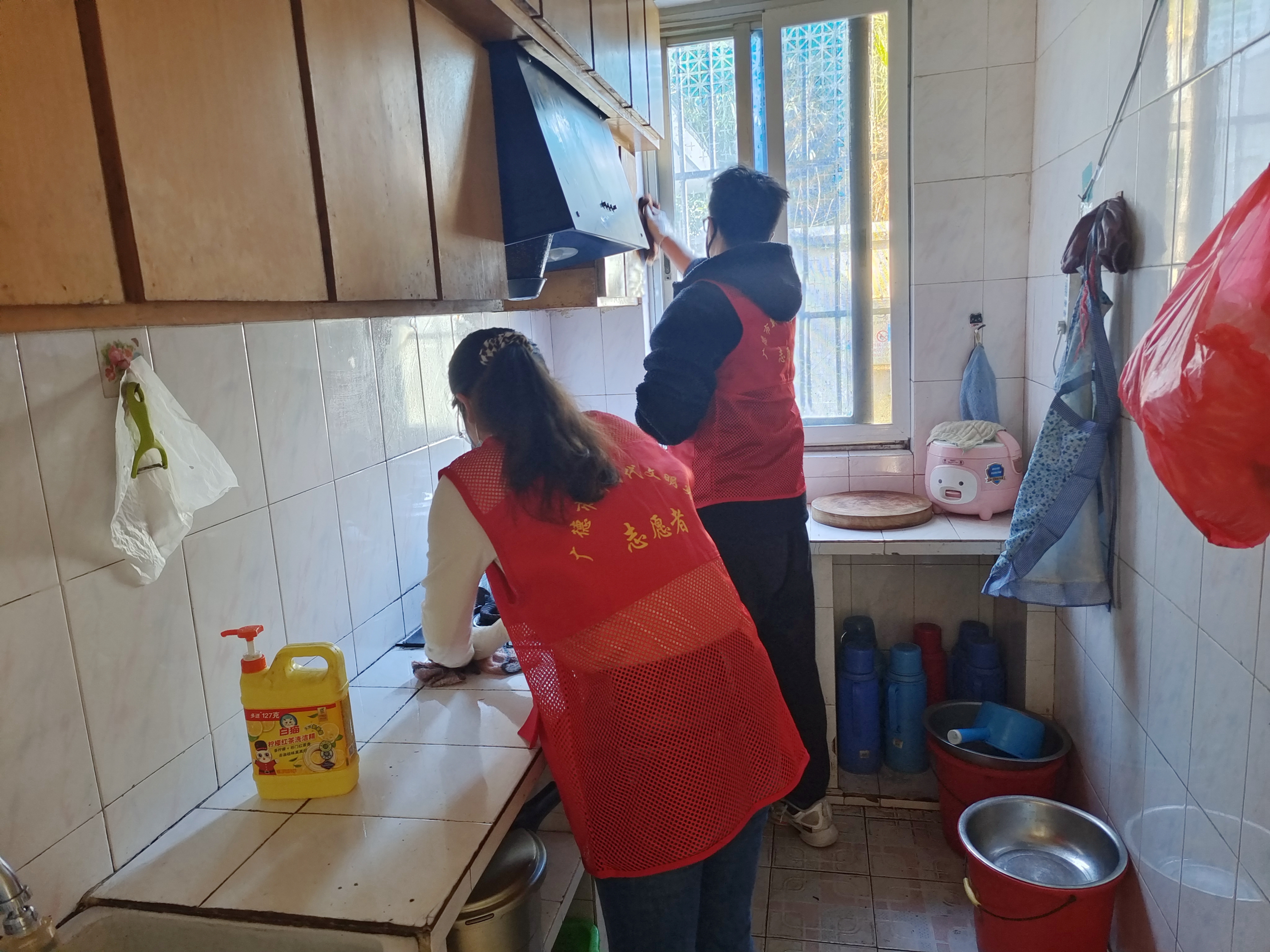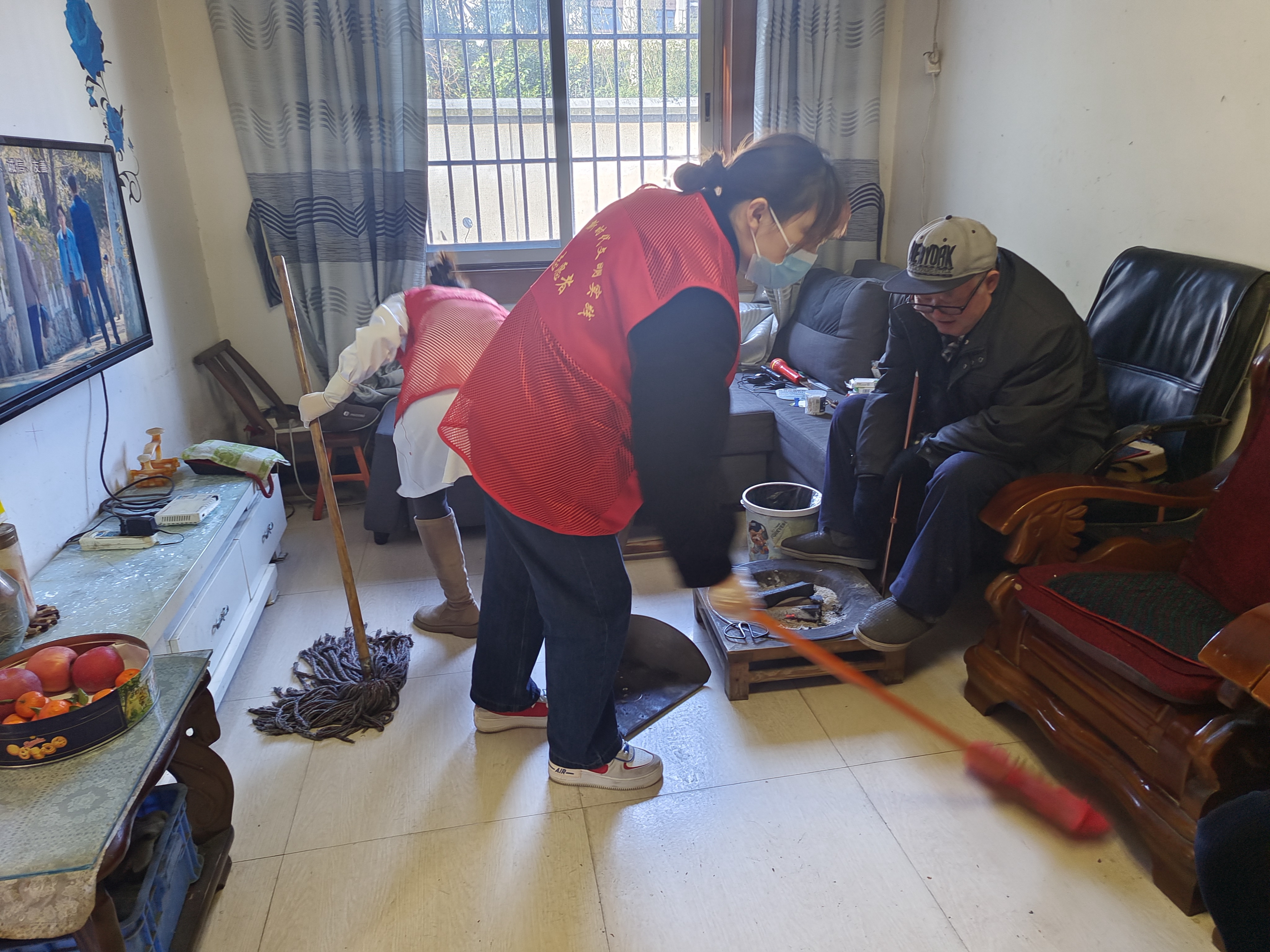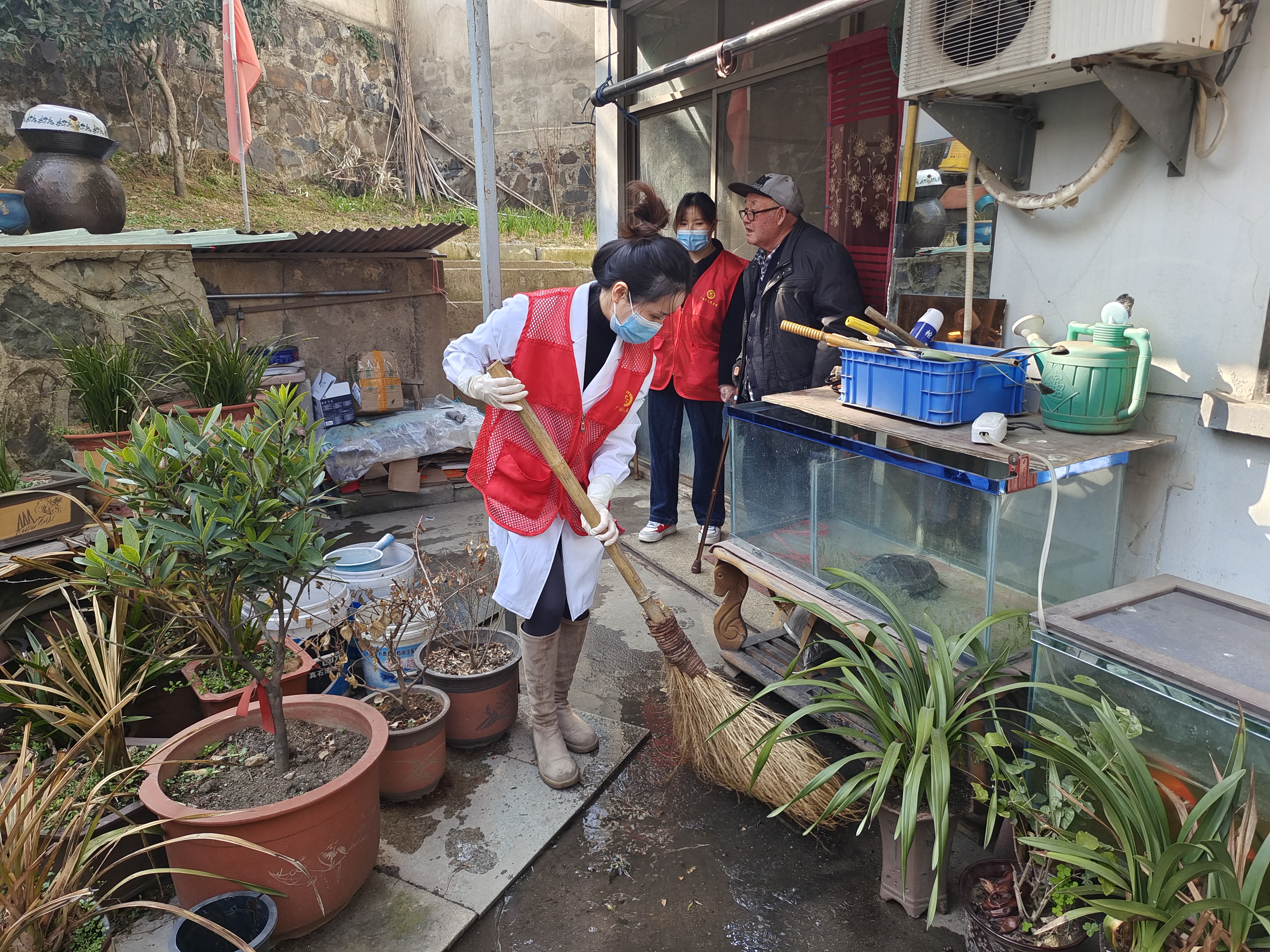 志愿者们早早来到老人家里,帮助他们整理家务、收拾院子,在打扫卫生之余,志愿者们陪老人聊天,了解老人的身体情况和生活情况,告诉老人需要帮助随时联系,两位老人非常高兴,倍感温暖,一直不停地说着感谢的话。