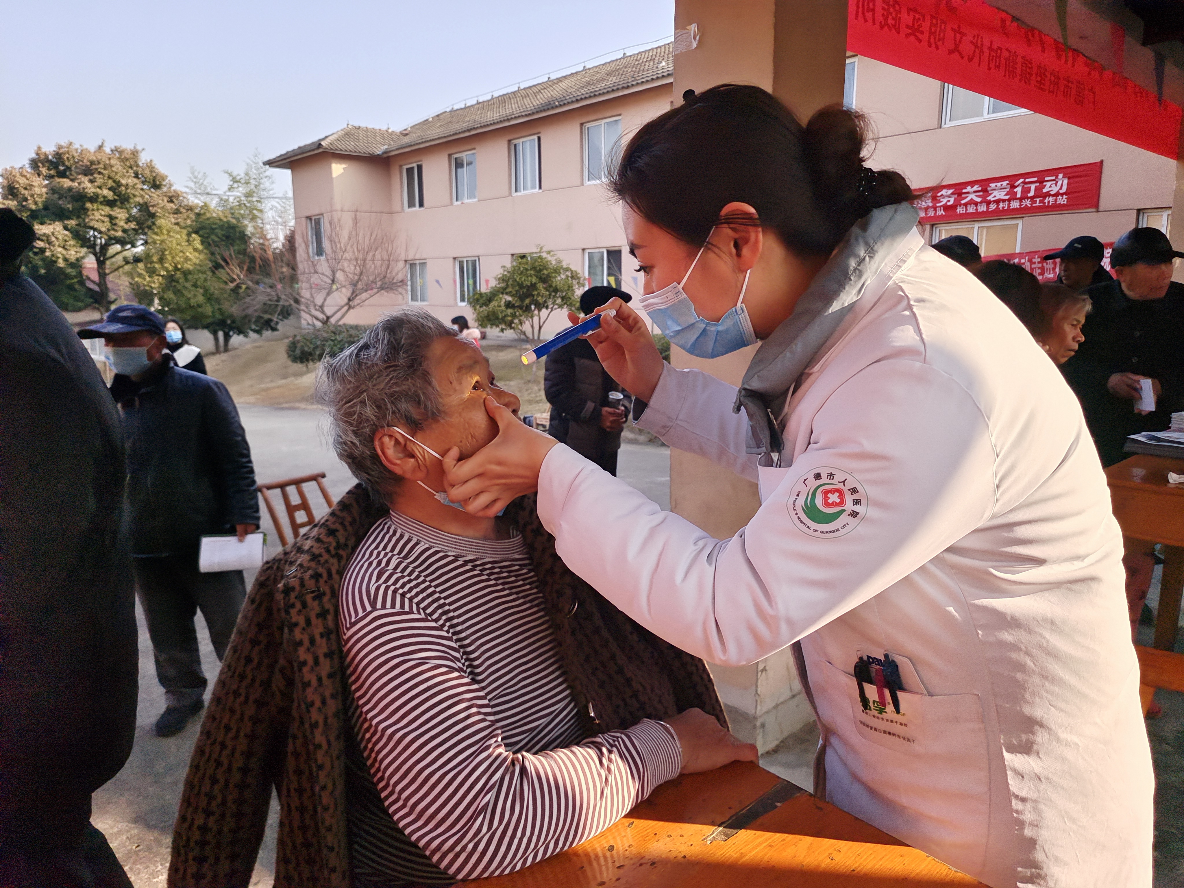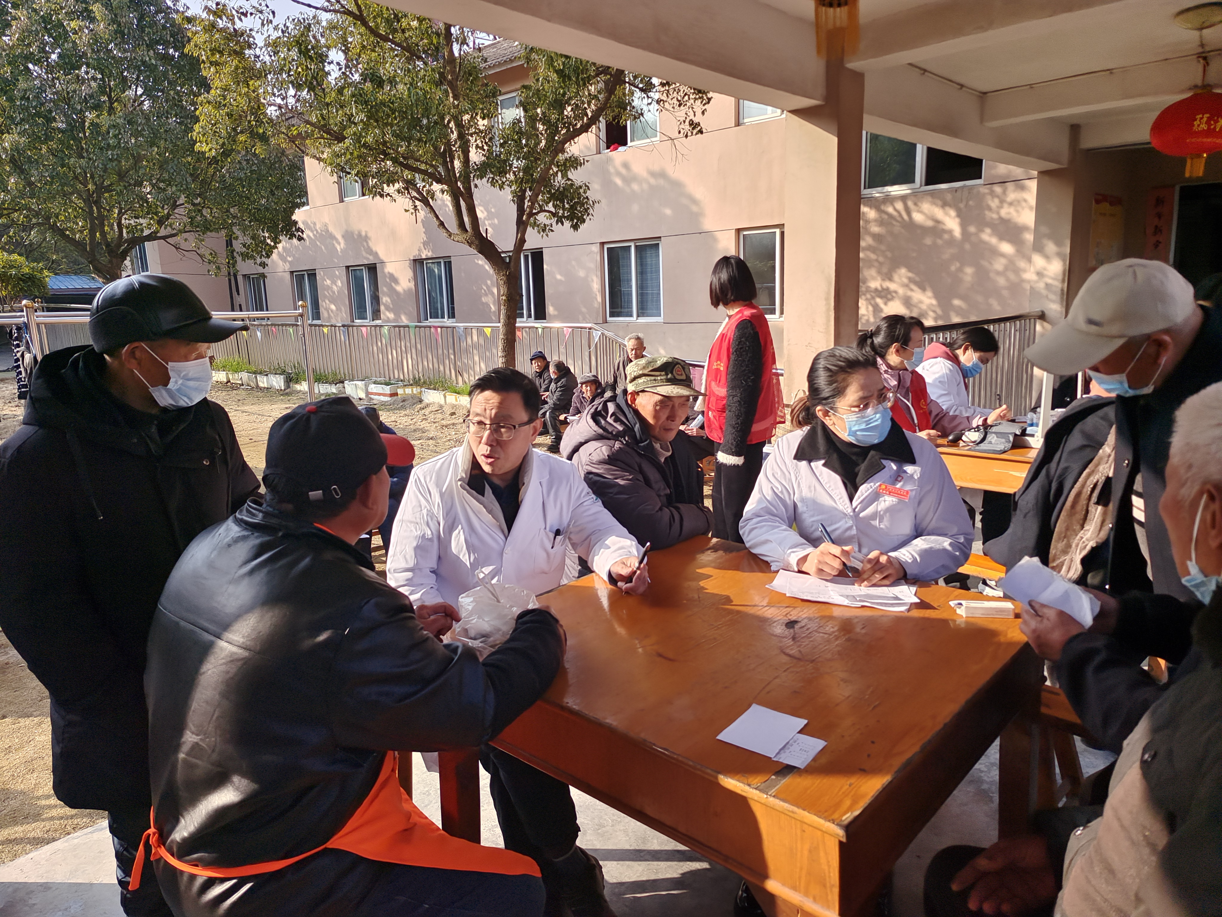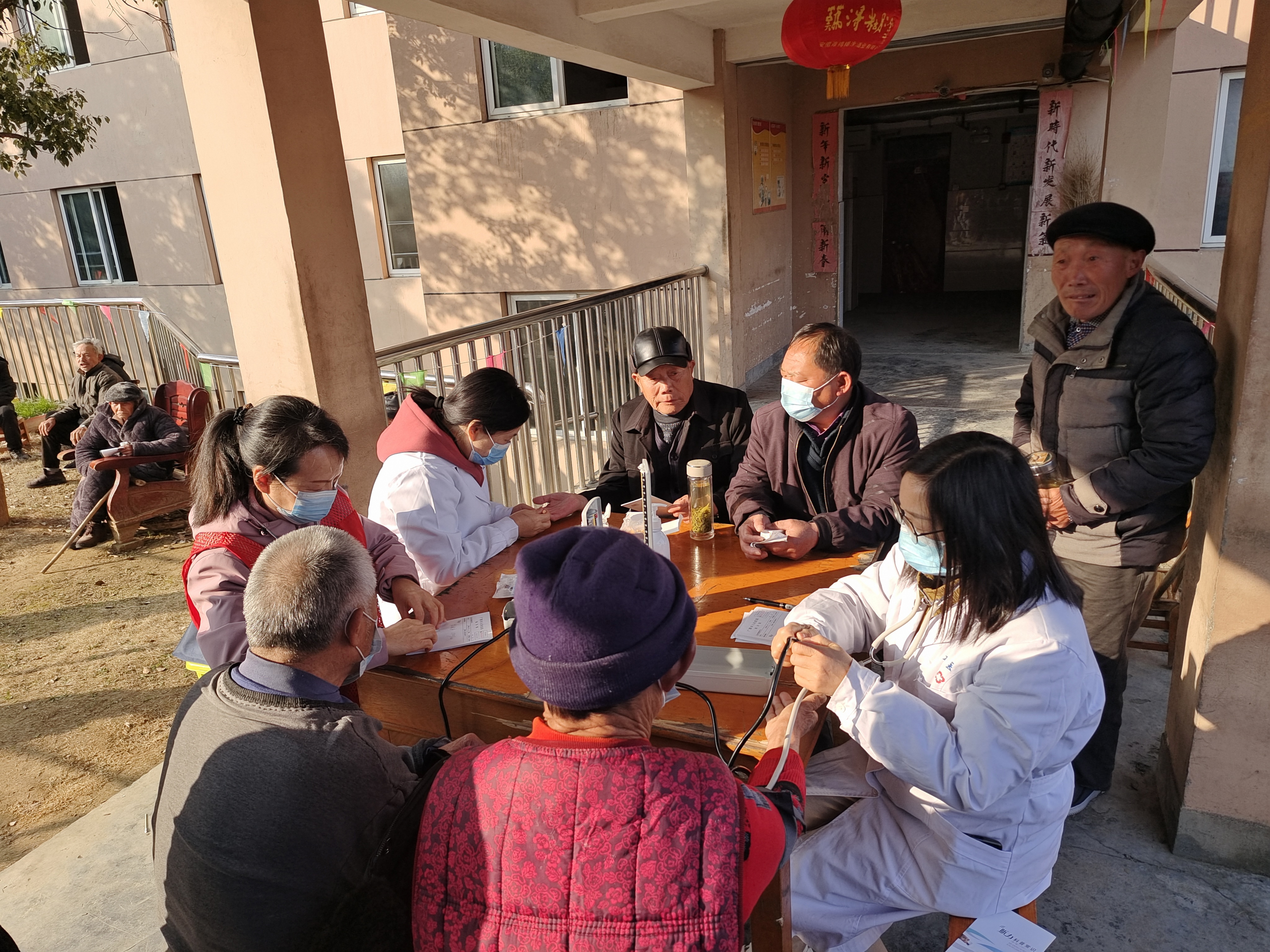 神经内科、内分泌科、眼科专家为老人们检查身体,党员志愿者和团员志愿者为老人测量血压、血糖,发放健康知识宣传资料,宣传爱耳知识。