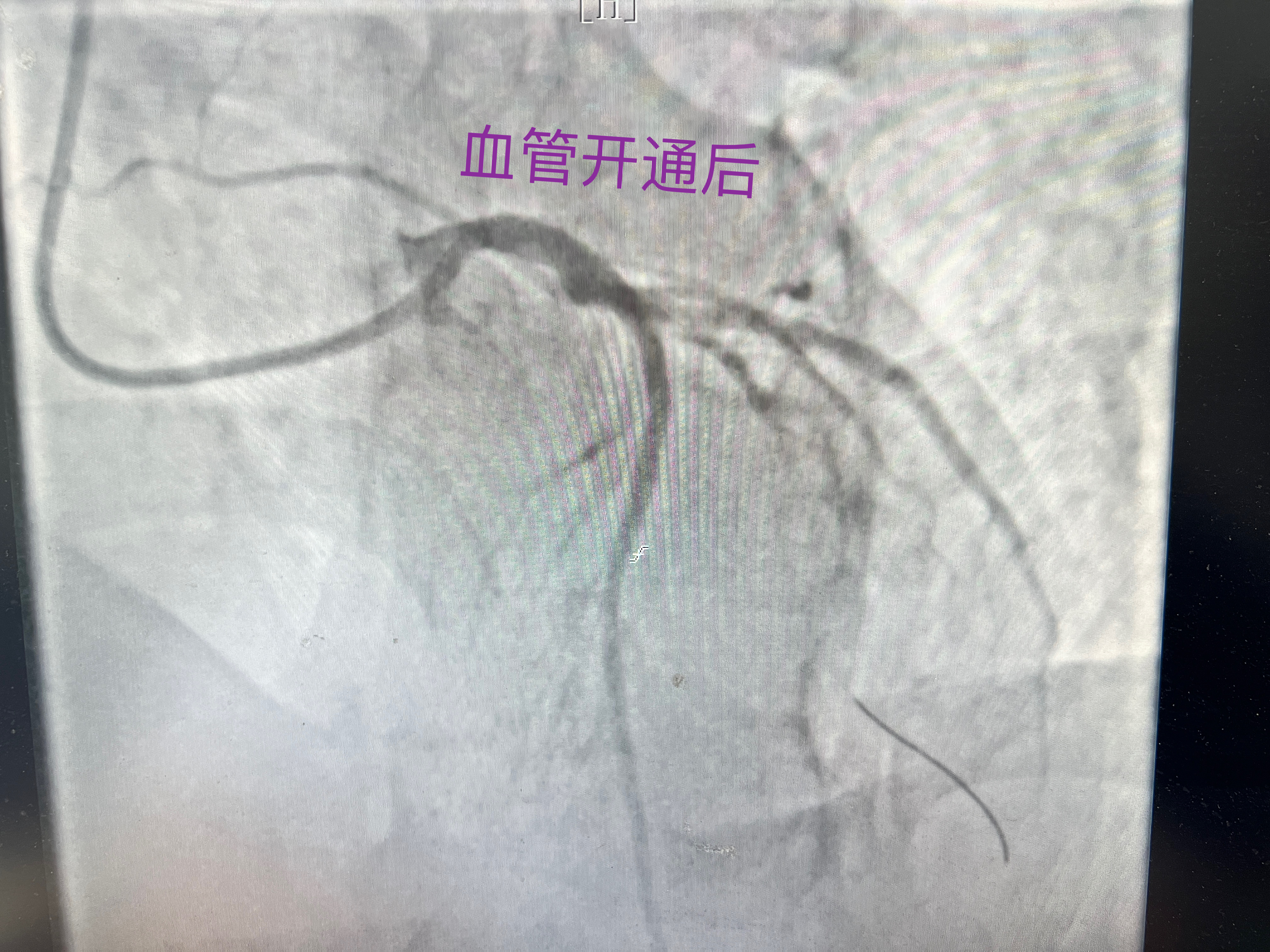 患者的病情极为危重,听到诊断后,患者情绪焦虑,不知所措,我院立即开通胸痛中心的绿色通道救治,由医院人员帮其办理入院手续,予以吸氧、心电监护,给予阿司匹林、替格瑞洛药物负荷。联系患者家属后,充分交代患者病情及目前最佳治疗方案,在取得患者及家属的同意下,实施急诊冠脉介入术。