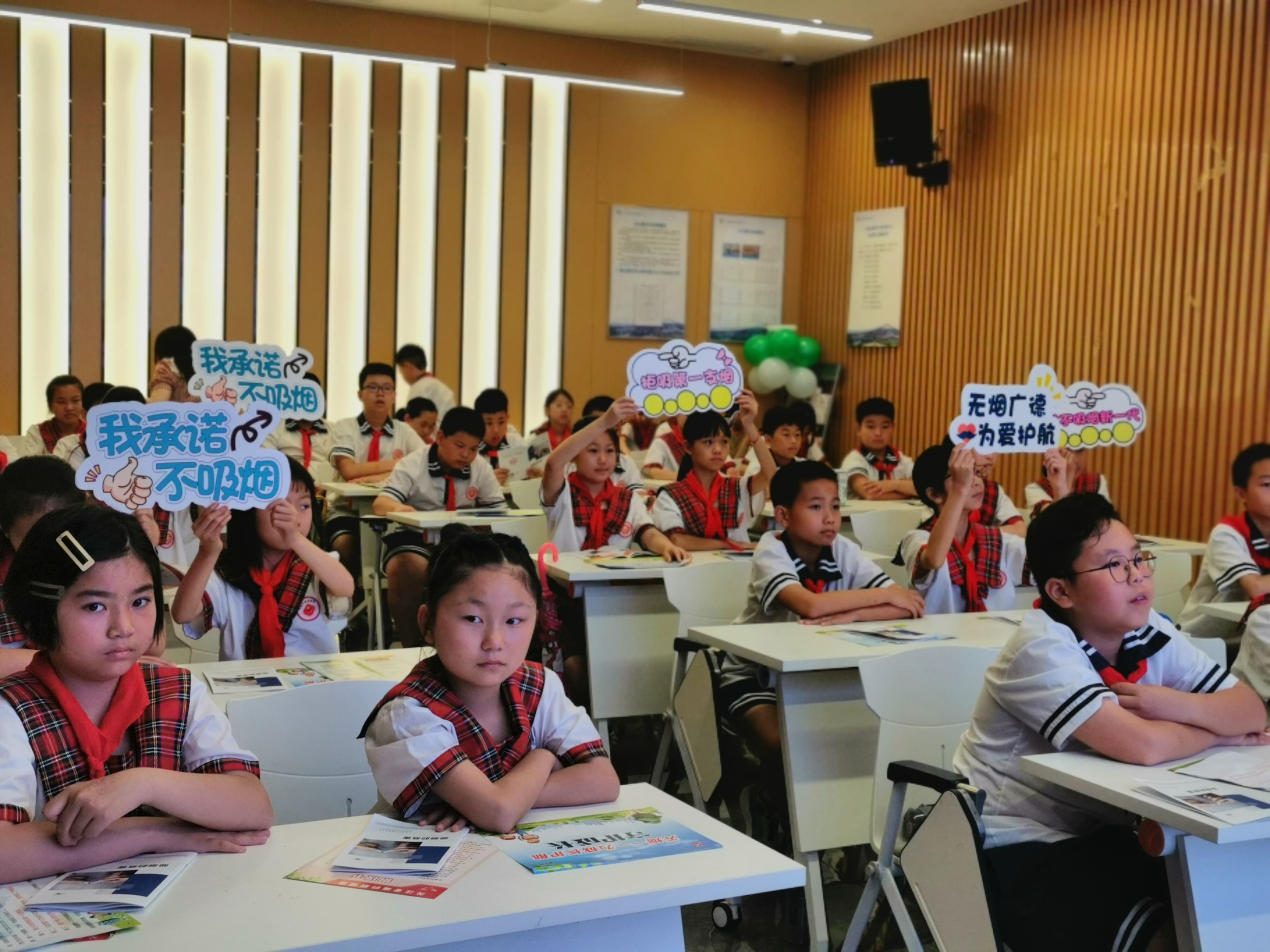 课堂现场氛围浓烈,通过志愿者们的讲解,同学们意识到吸烟的危害,激发了大家控烟从自身做起的信心与决心。