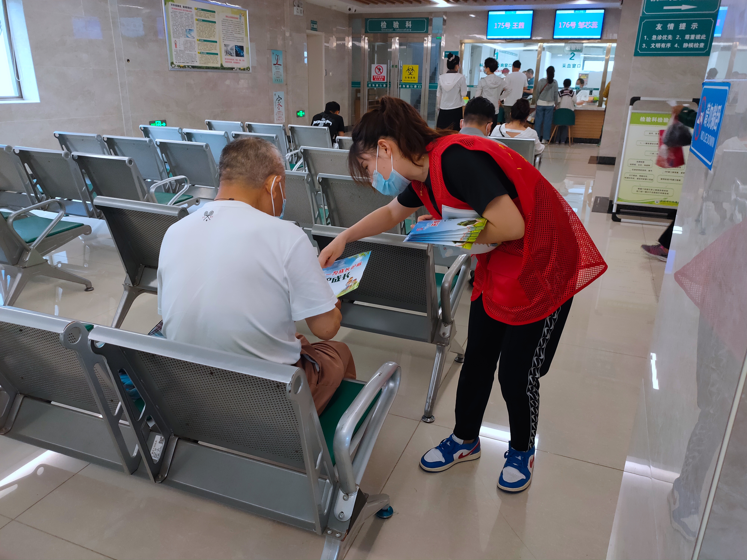 我院团员志愿者在门诊大厅、戒烟门诊区域向前来就诊的患者及家属发放控烟宣传资料,宣传吸烟的危害、戒烟的好处及方法,引导有戒烟意愿的群众科学戒烟、成功戒烟,号召大家积极参与到控烟戒烟活动中来,自觉树立控烟意识,养成健康的生活方式。