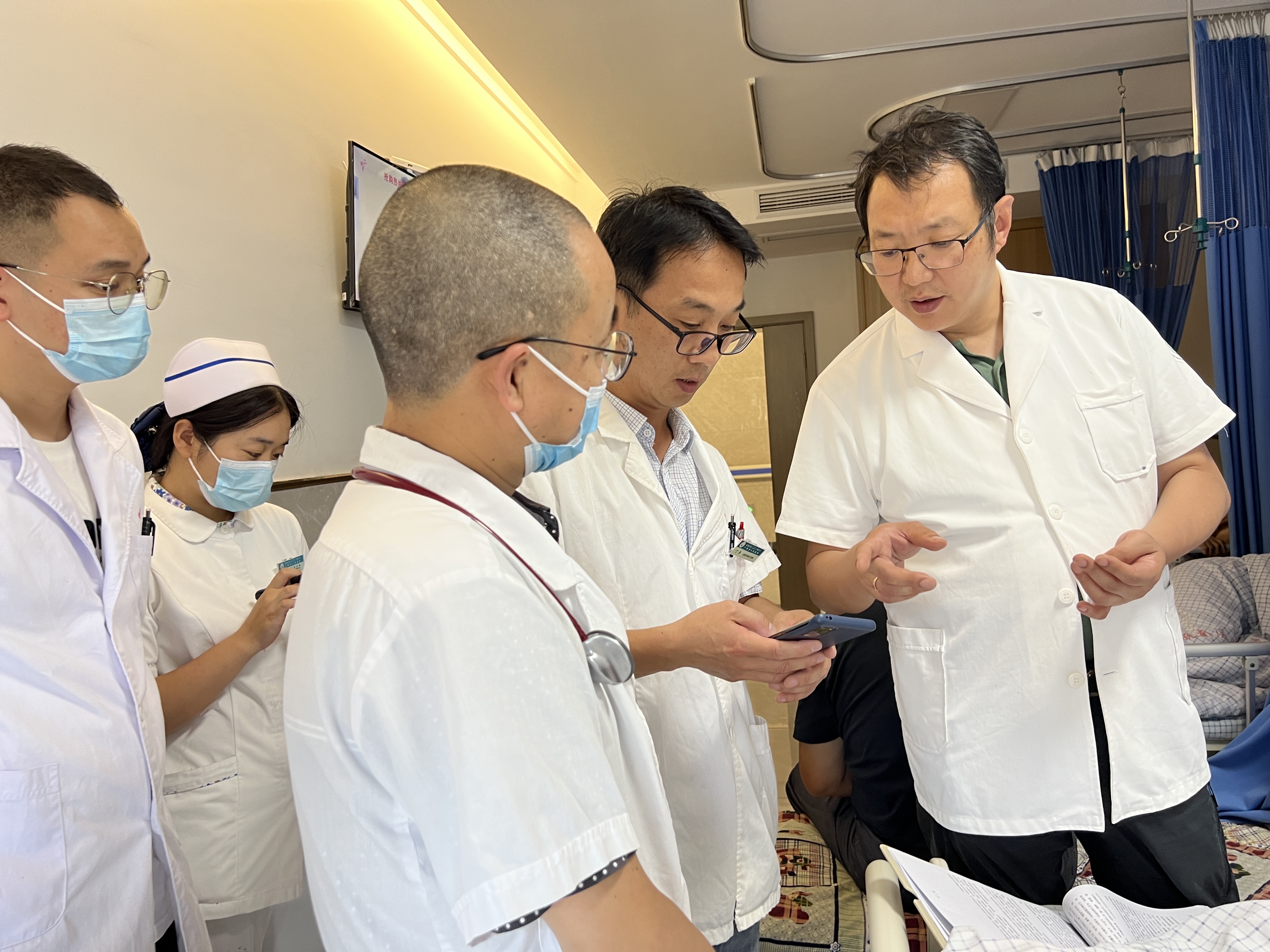 7月6日,浙江大学医学院附属第二医院李长岭教授在我院门诊义诊后为心血管内科一高龄危重症患者进行床边会诊。