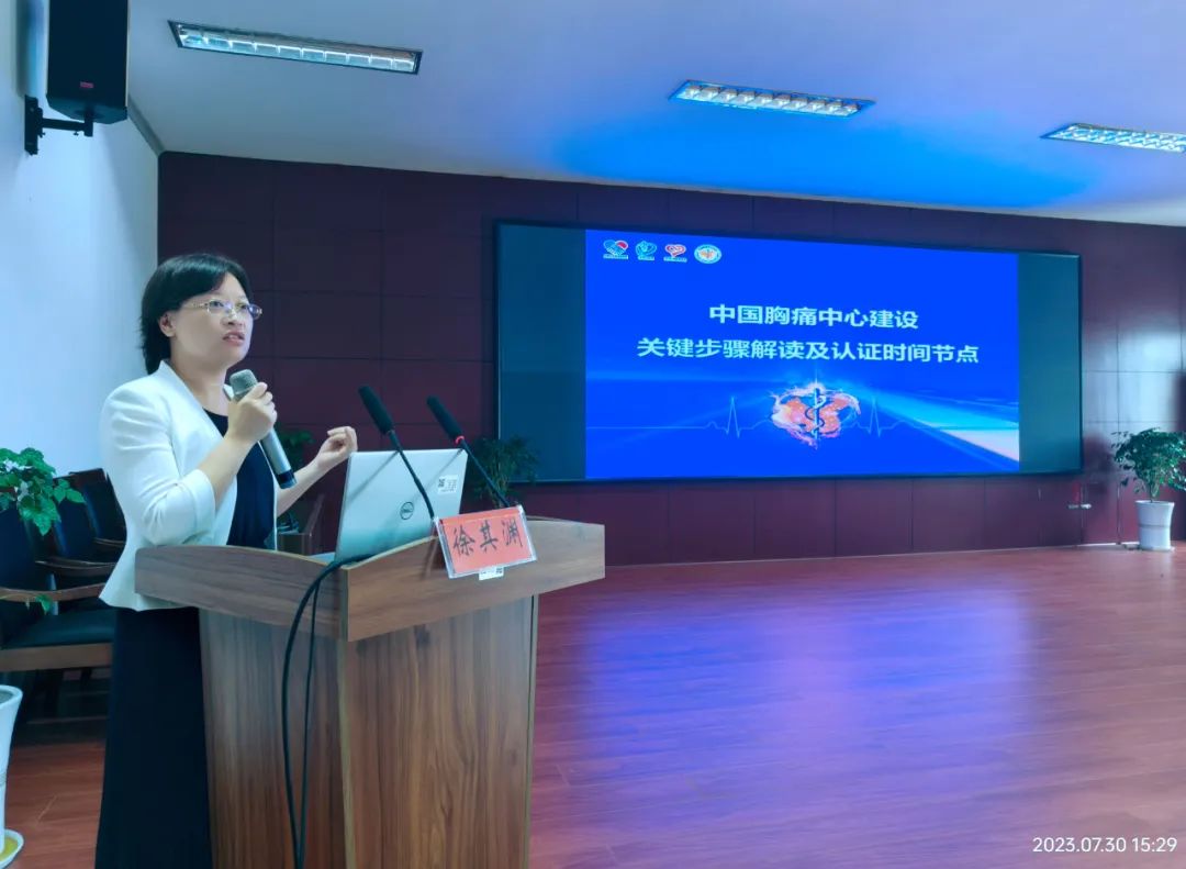 浙大二院心血管内科副主任医师徐其渊详细阐述了《我国基层胸痛中心建设关键步骤及时间节点》,分享了建设流程,介绍了关键要素及步骤,为我院顺利推进胸痛中心建设提出了指导性意见。