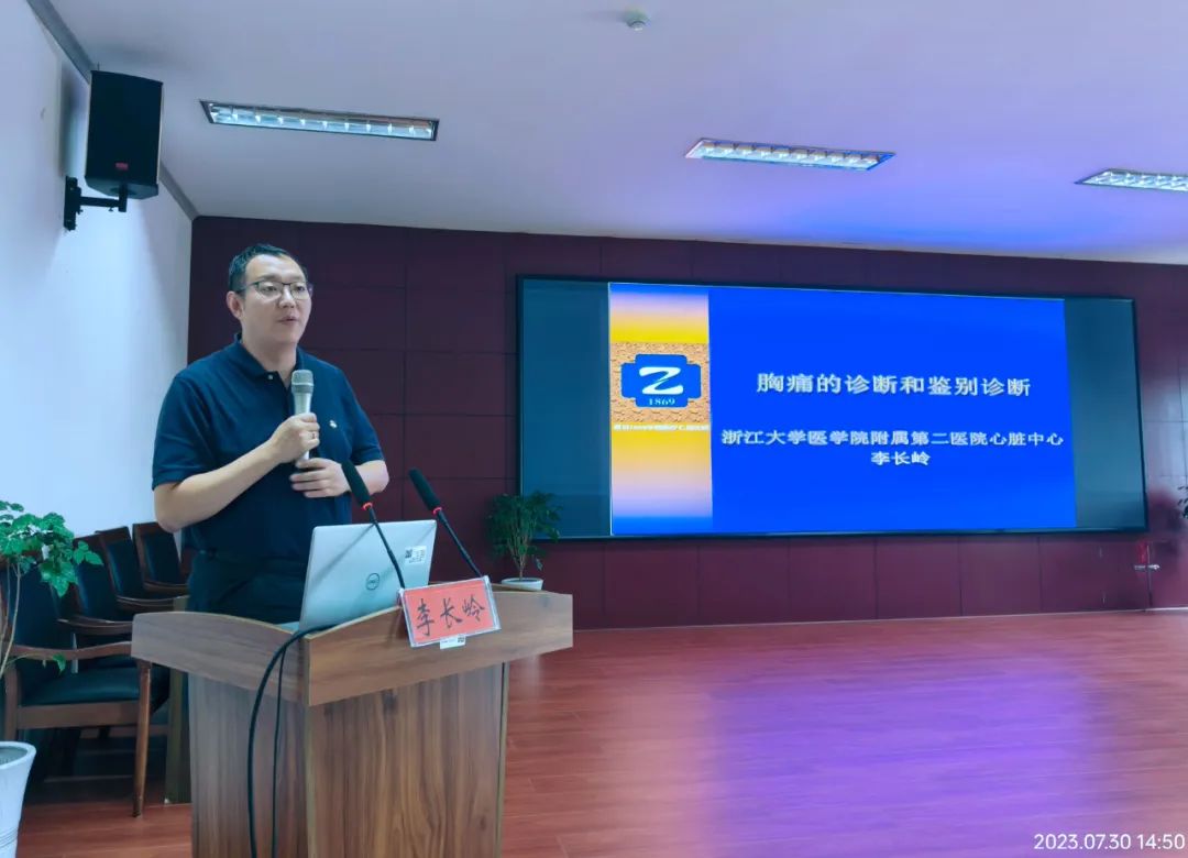 在专题授课环节,浙大二院主任医师李长岭就《胸痛的诊断和鉴别诊断》进行了详细的讲解,并结合大量临床中的实际病例开展了讨论和分析,通过深入浅出的讲解,大大提升了我市广大基层医务人员对胸痛相关疾病的早期识别和救治能力。