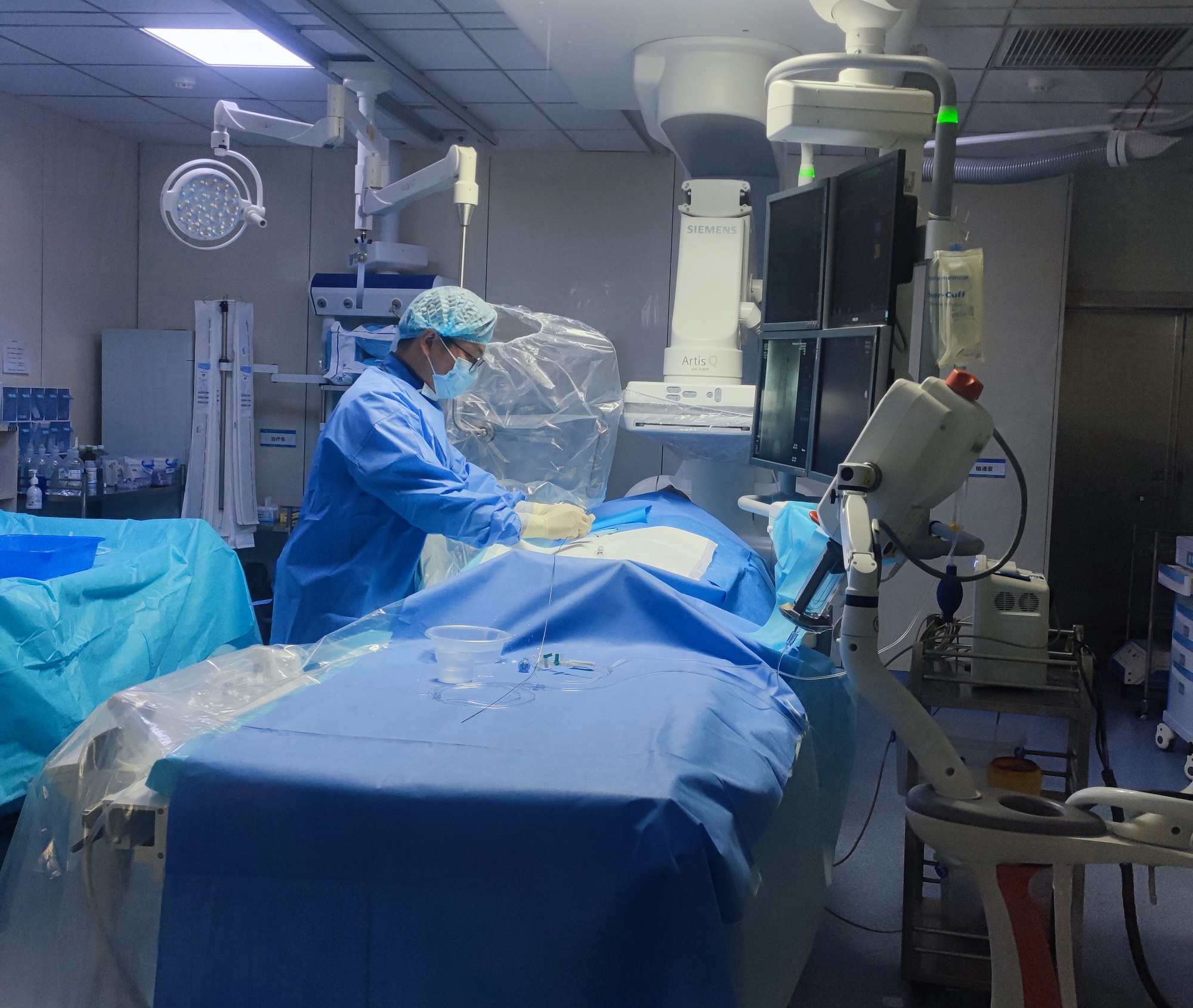 神经内科介入团队程斌和丁超医生立即予以静脉溶栓桥接动脉取栓治疗,手术顺利。