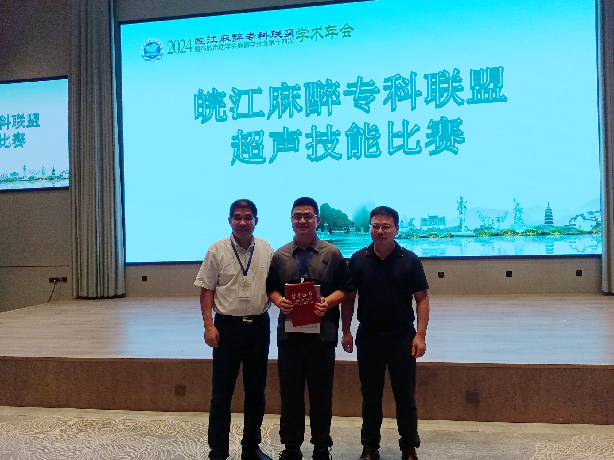 下午超声分会场,在陈永权教授的主持下备受期待的超声比赛拉开帷幕。来自安庆、池州、铜陵、黄山、马鞍山、芜湖和宣城等区域的参赛队伍展示了他们的高超技能和专业知识。选手们通过精湛的技术和密切的团队协作,展示了超声技术在麻醉医学中的重要应用价值。评委团队由来自皖江地区的麻醉专家组成,他们以专业的态度和严谨的评分标准,确保了比赛的公平性和权威性。选手们在比赛中表现出色,充分展现了麻醉医生的专业技能和良好的精神风貌,最终比赛结果,一等奖:黄山市人民医院叶俊杰,二等奖:马鞍山人民医院胡宁、池州市人民医院黄俊,三等奖:南陵县人民医院俞光洲、宁国市人民医院方辉强、池州市人民医院李建杰,其余选手获得优胜奖。