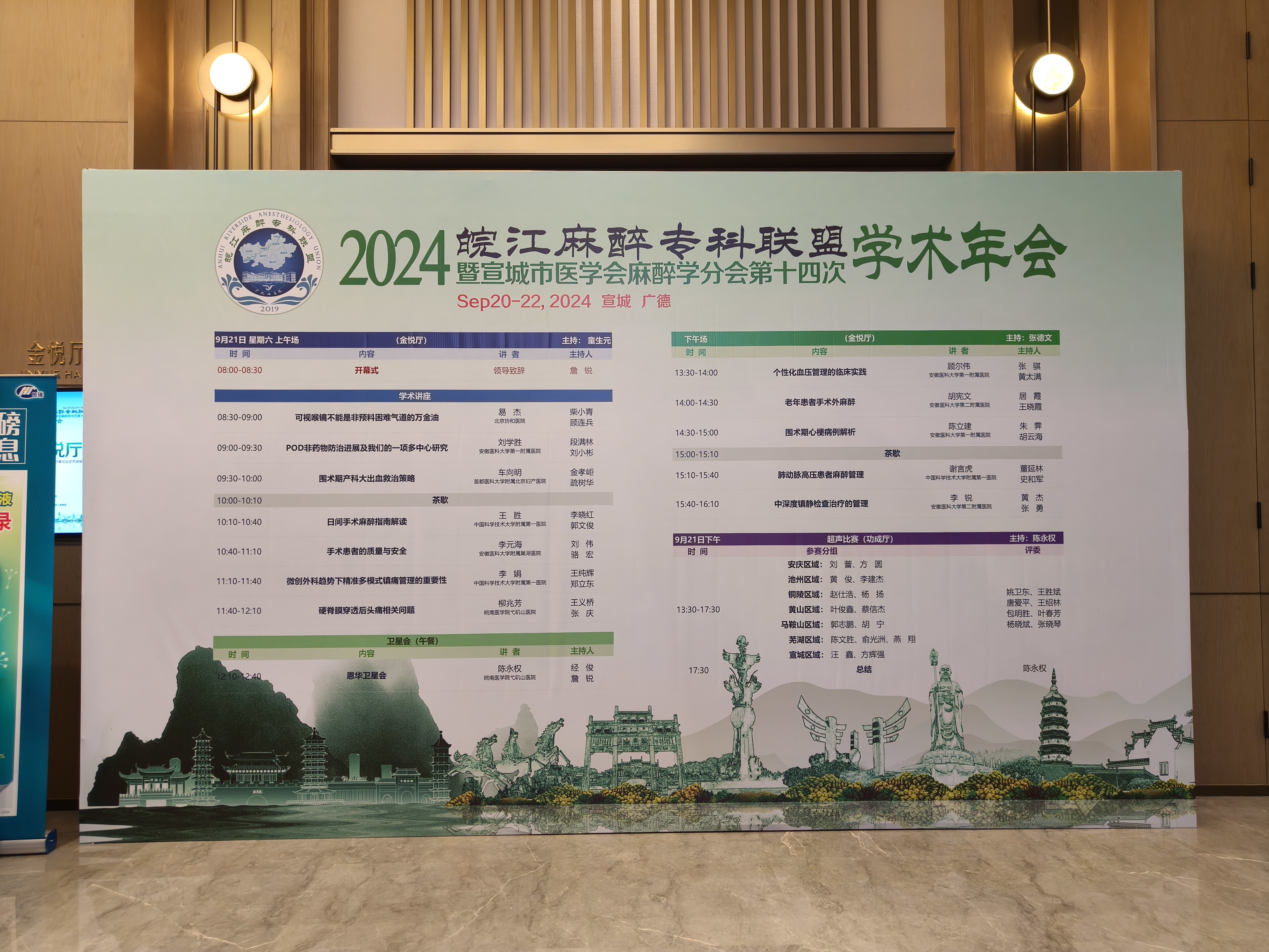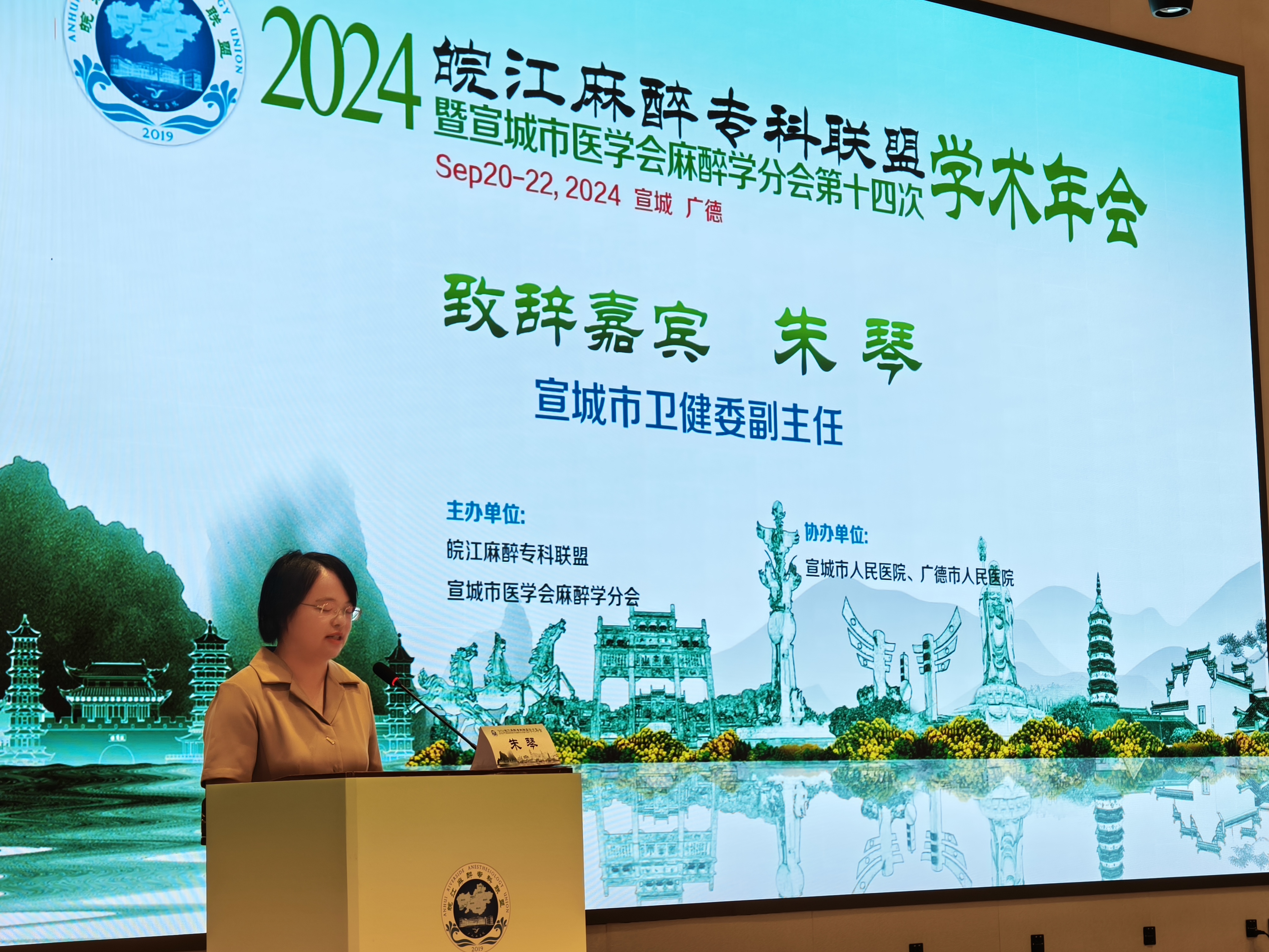 秋风送爽,丹桂飘香,备受瞩目的2024皖江麻醉专科联盟暨宣城市医学会麻醉学会第十四次学术年会于2024年9月20—21日在安徽省广德市隆重举行。此次会议汇聚了省内外的麻醉专家、学者和临床麻醉工作者,共同探讨麻醉医学的最新进展和未来发展趋势,旨在提升麻醉医疗质量,促进学科交流与合作。