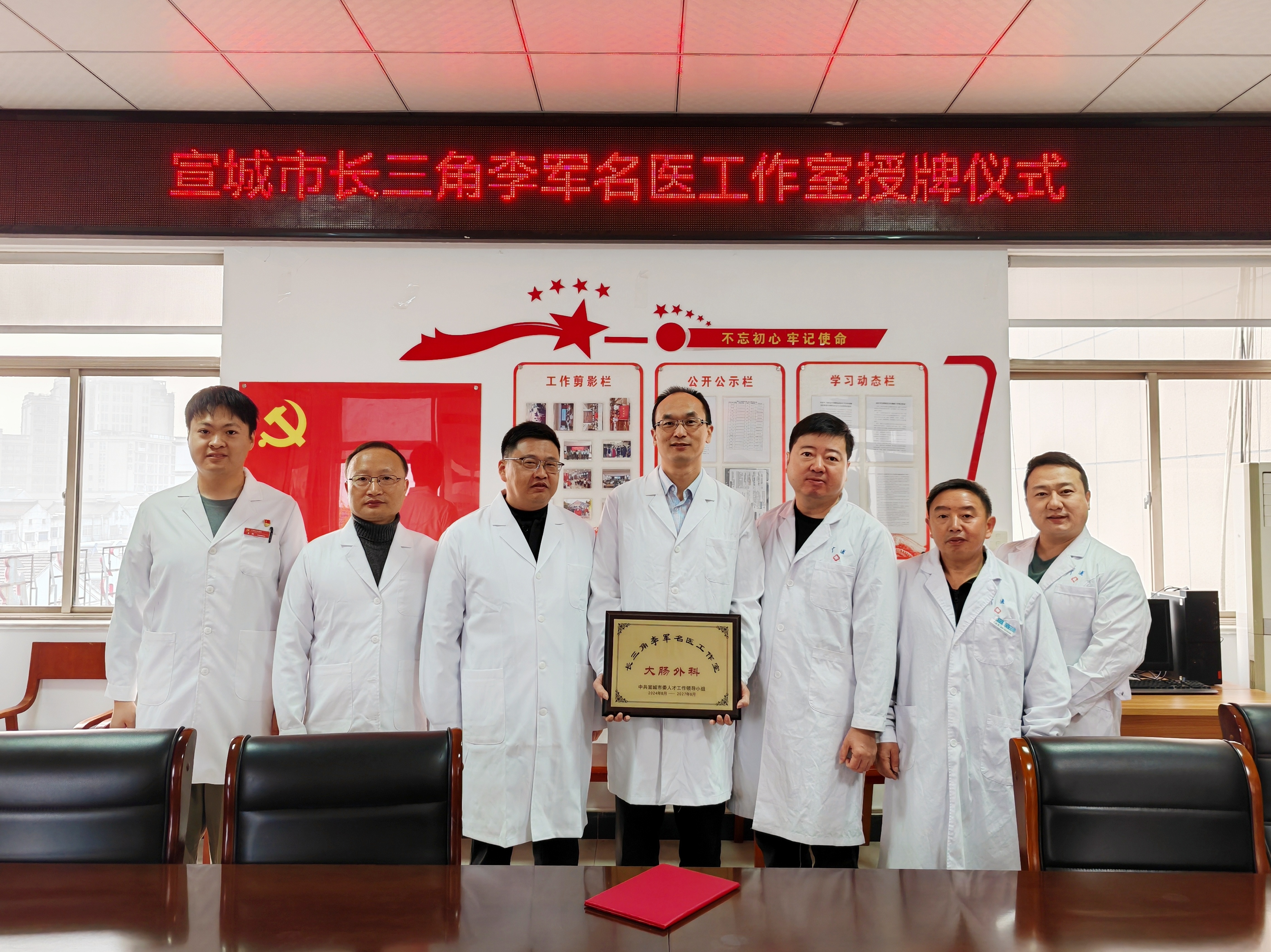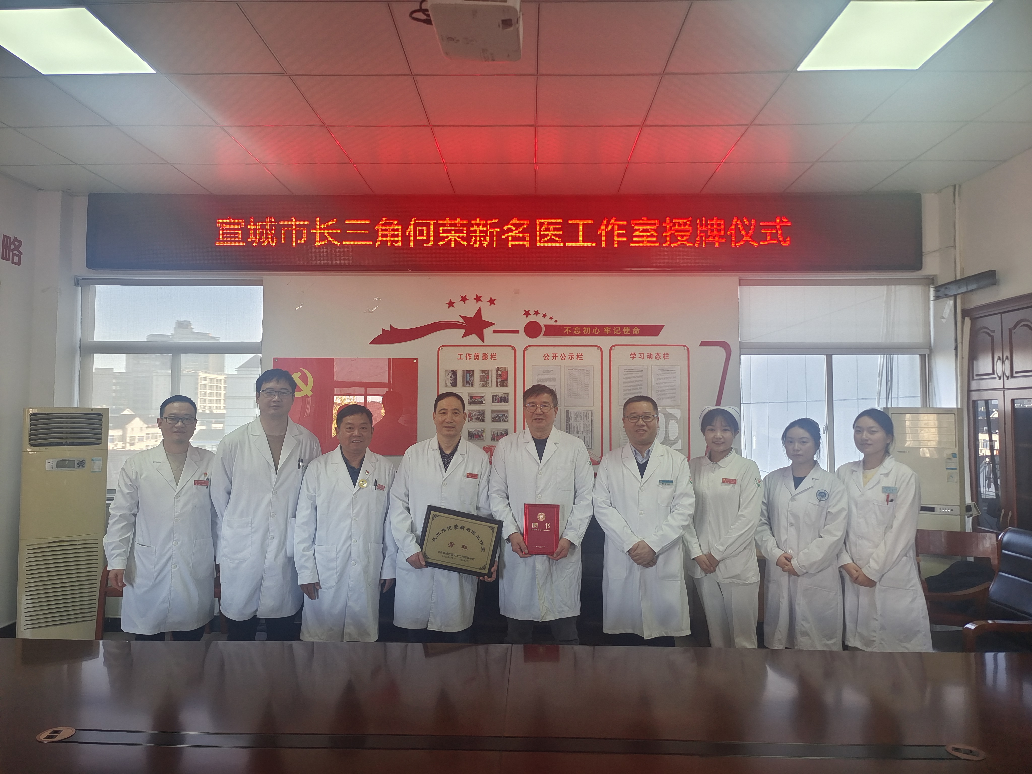 为进一步推动优质医疗资源合作共享,持续发挥名医专家的引领作用,满足群众就医需求,支持健康广德建设,本年度经宣城市委人才工作领导小组认定,我院成功设立了宣城市“长三角李军名医工作室”和“长三角何荣新名医工作室”。近日,我院举行了名医工作室授牌仪式。