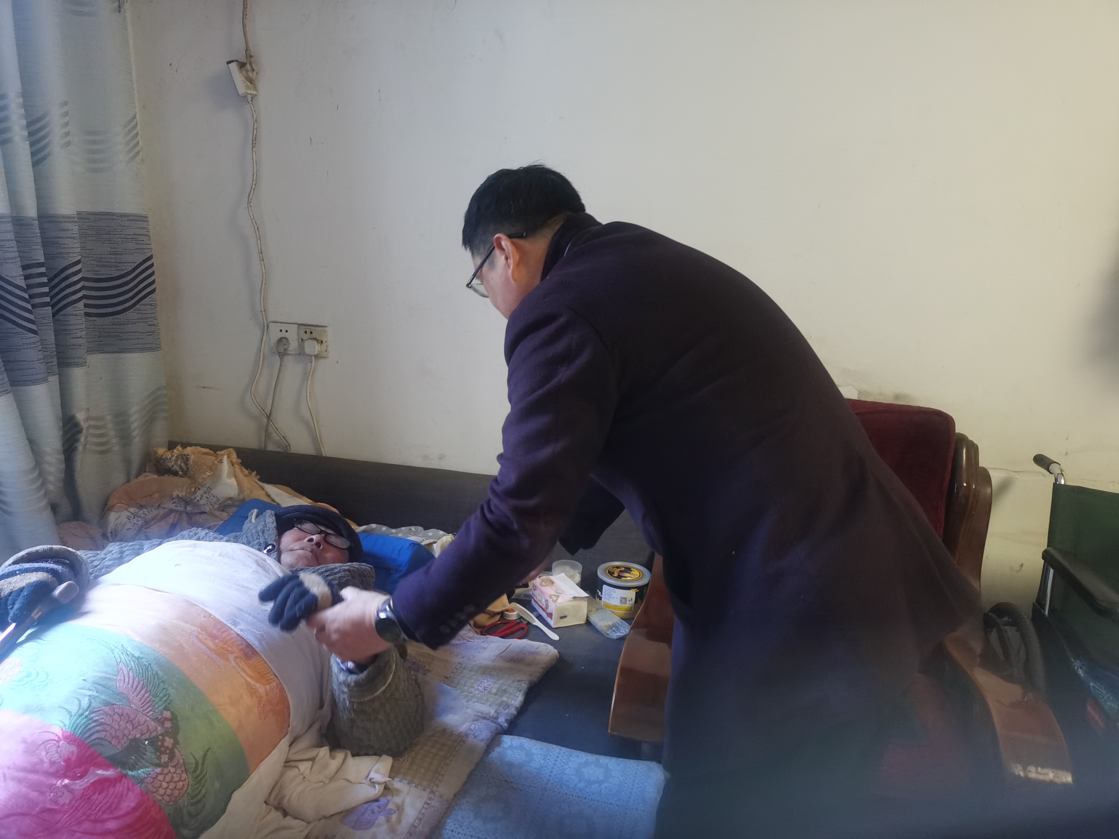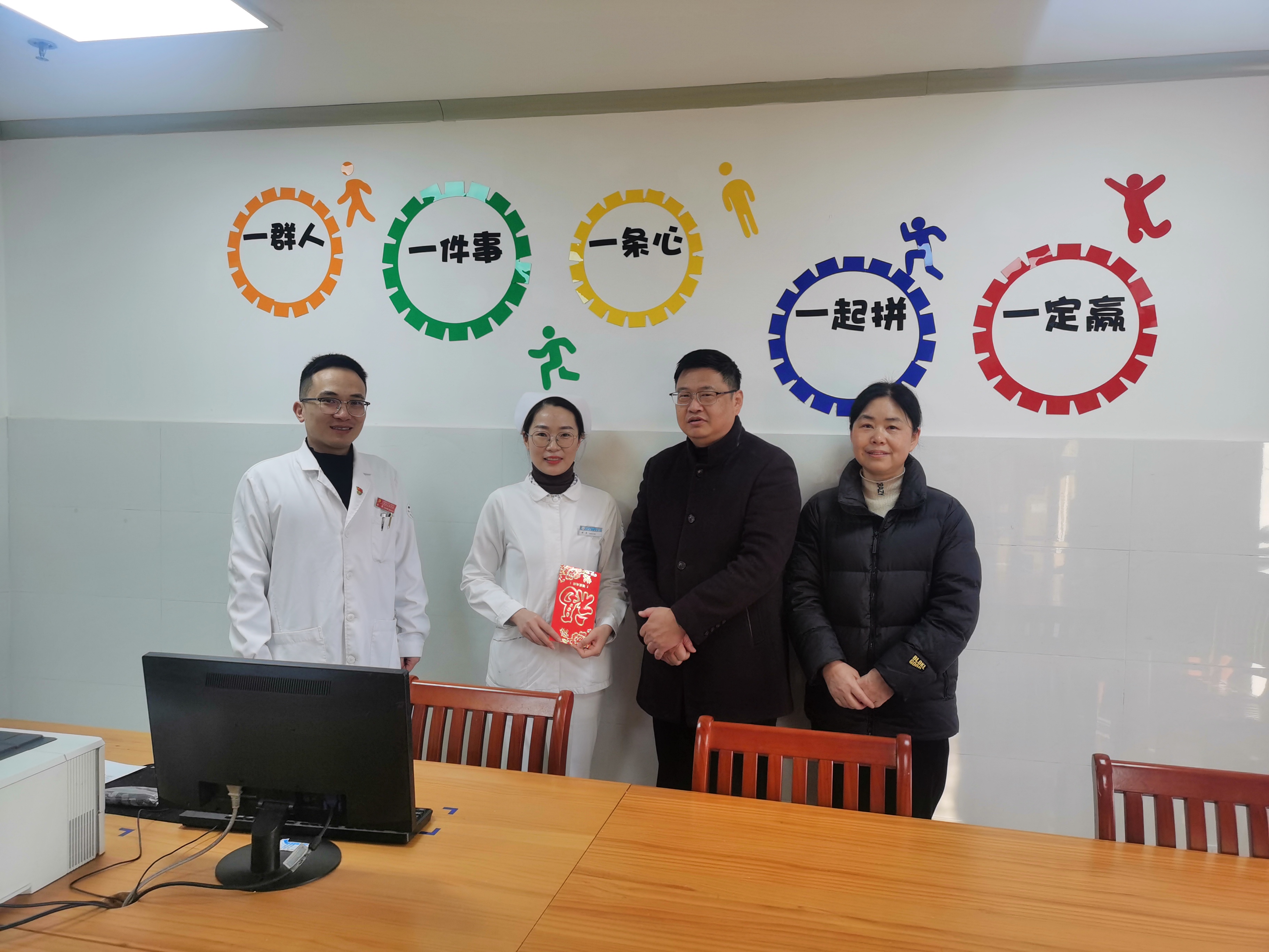 1月17日,院党委书记程亮带队来到因病手术休养的医院职工家慰问。叮嘱他保重身体,更好地为广大患者服务。