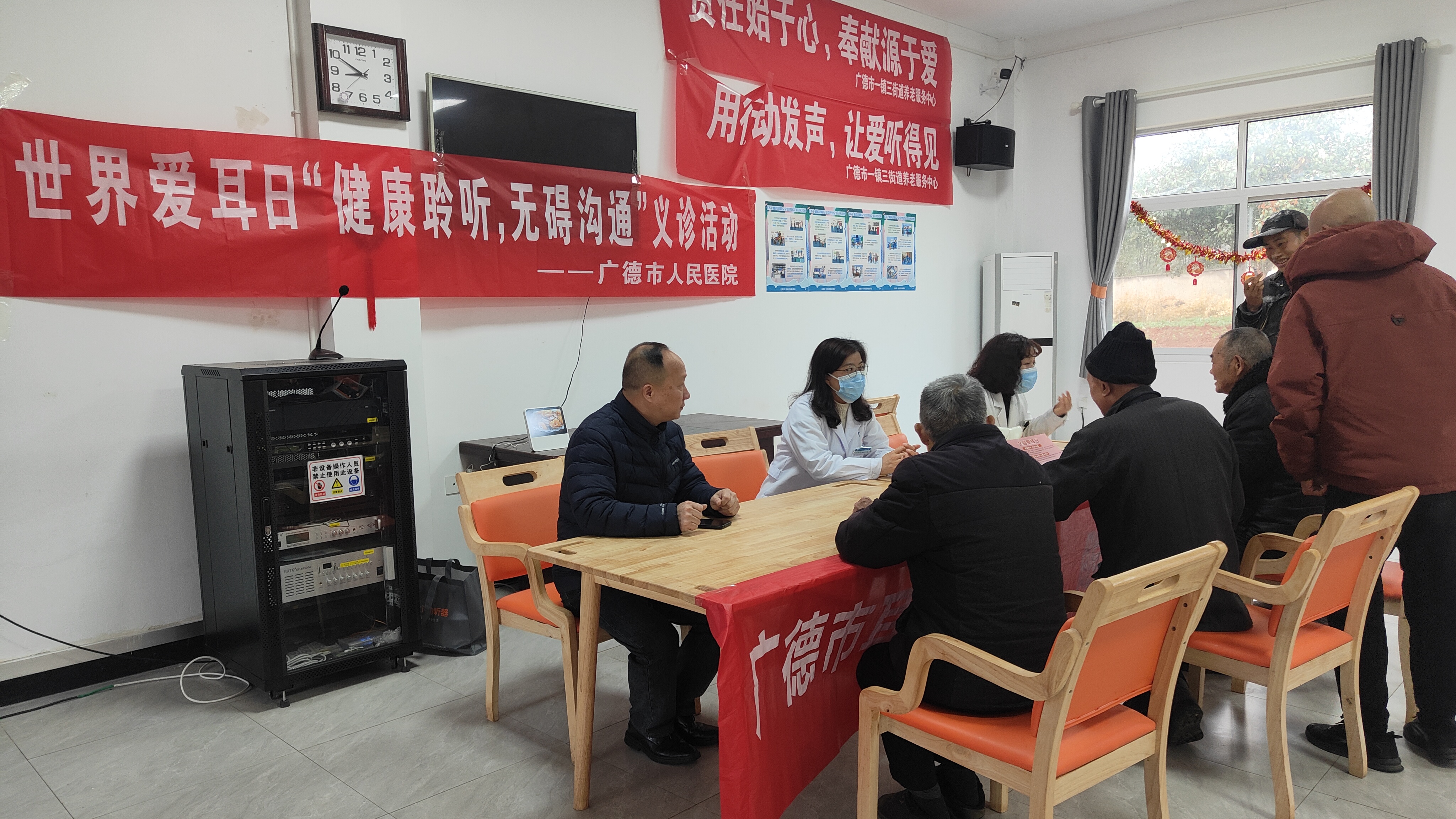 2025年3月3日是我国第26个全国“爱耳日”,今年的活动主题为“健康聆听 无碍沟通”。为普及听力健康知识,增强全民爱耳护耳意识,3月3日上午,广德市人民医院耳鼻咽喉科医务人员来到桃州镇敬老院,开展了爱耳日义诊活动。