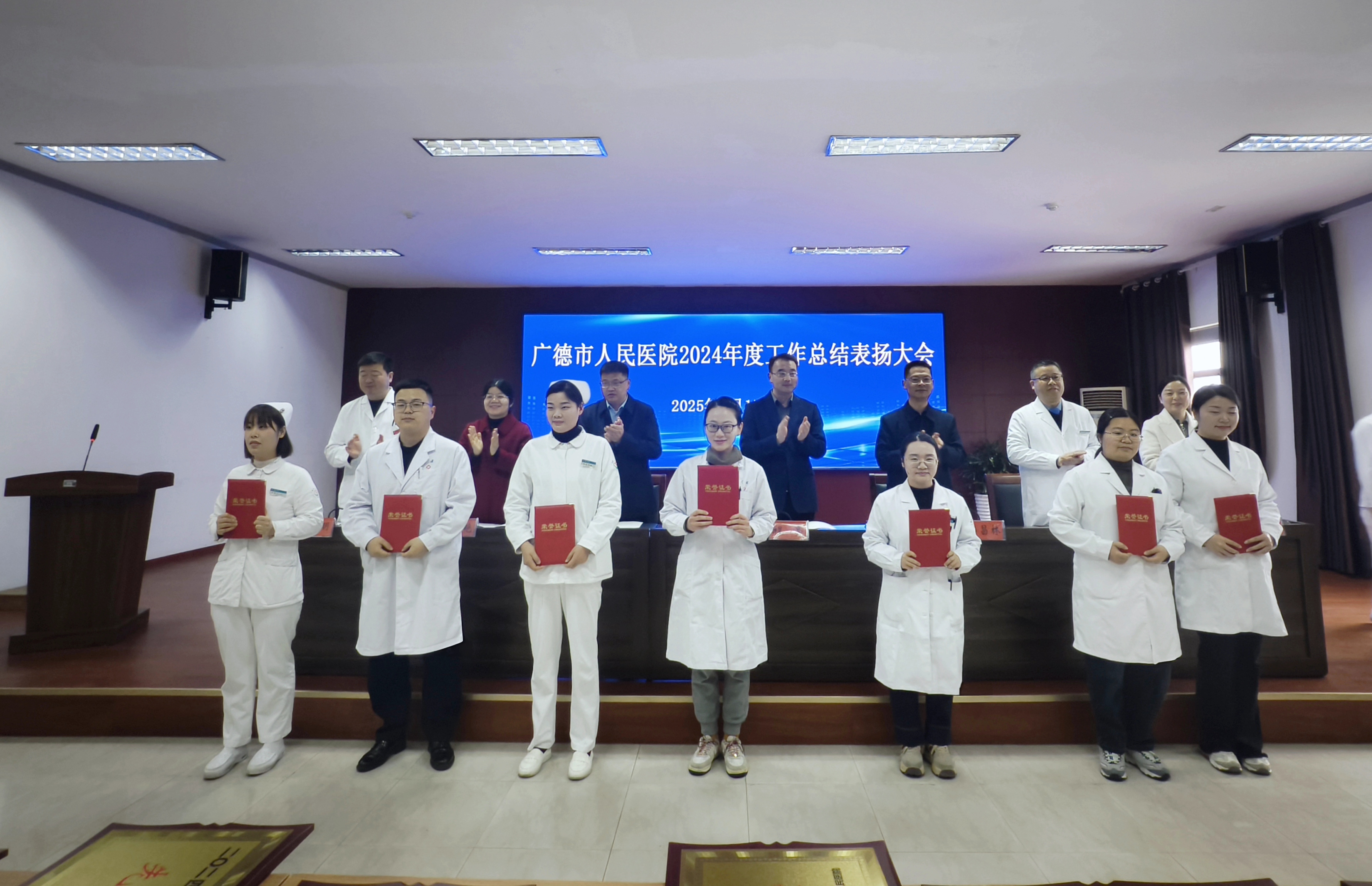 医院党政班子成员,各科室主任、护士长,受表扬的先进个人参加了会议。