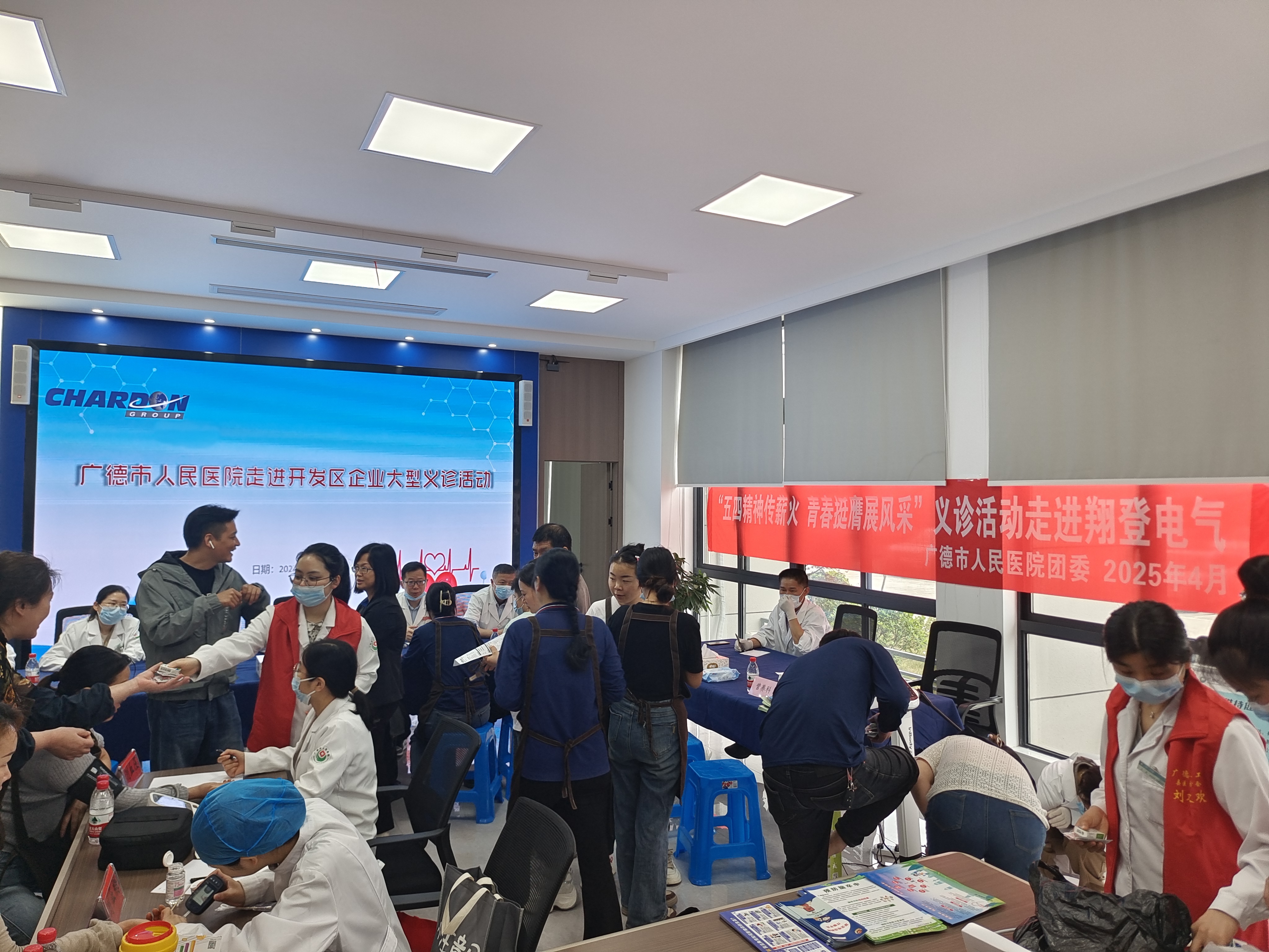 为纪念五四运动106周年,传承和弘扬五四精神,践行新时代青年的责任与担当,4月22日,我院组织医护团队与志愿者,走进安徽翔登电气有限公司,开展了“五四精神传薪火 青春挺膺展风采”主题义诊活动,将专业医疗服务精准送进企业,用实际行动诠释了新时代青年的奉献精神与责任担当。