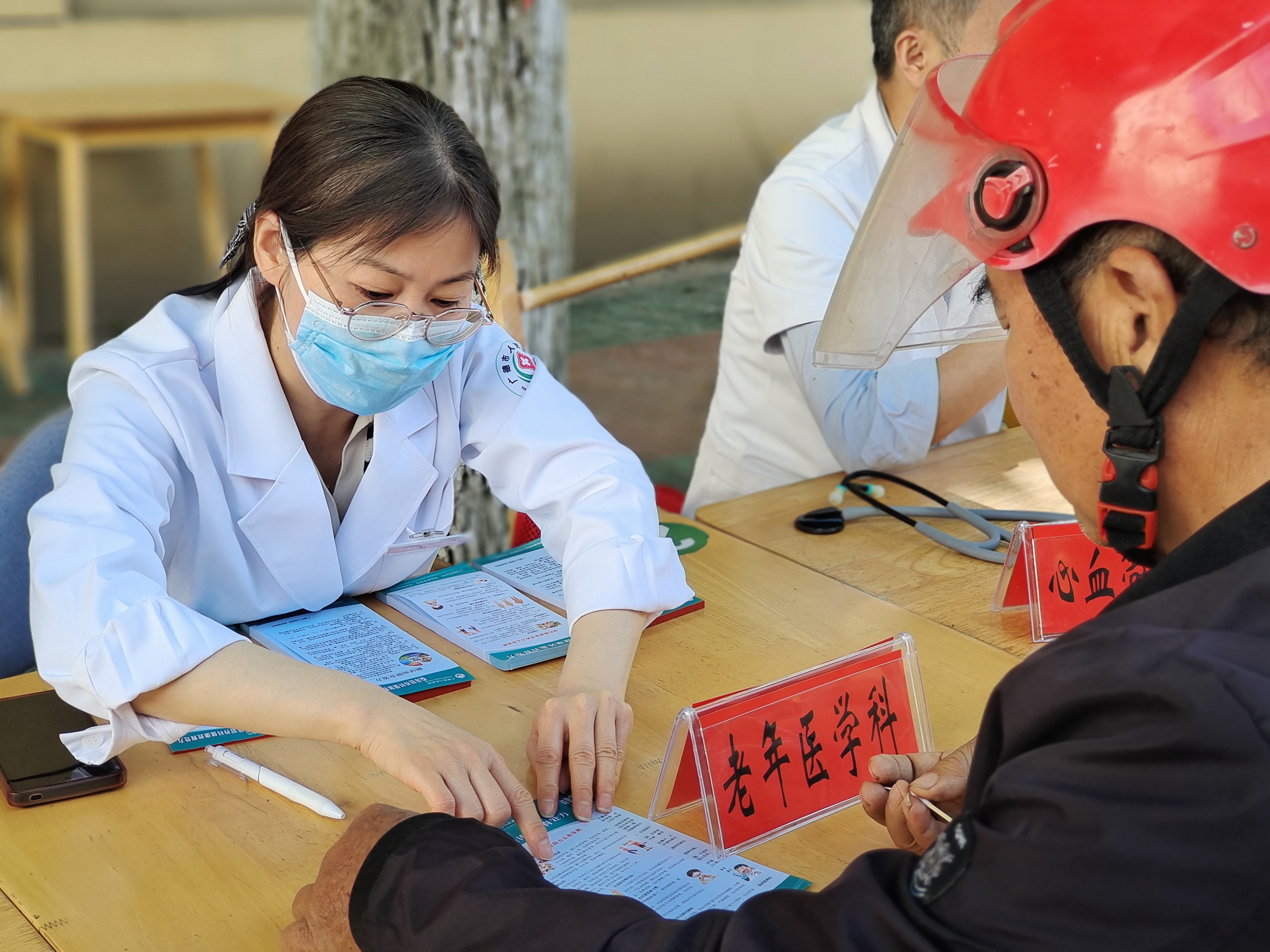 志愿者们向现场群众发放了健康知识宣传单,涵盖疾病预防、日常护理、饮食调理等多方面内容。