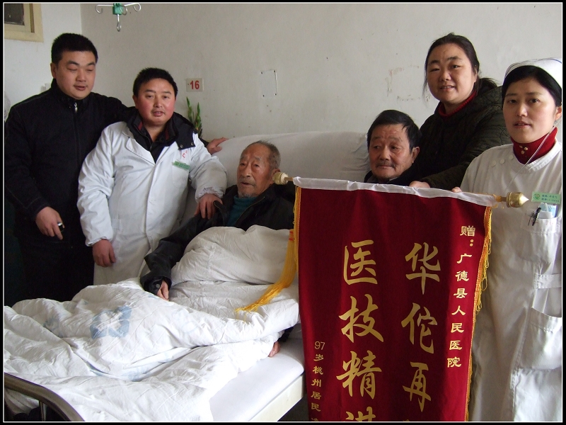我院医护人员用精湛的技术和精心的照料让老寿星康复并平安出院。