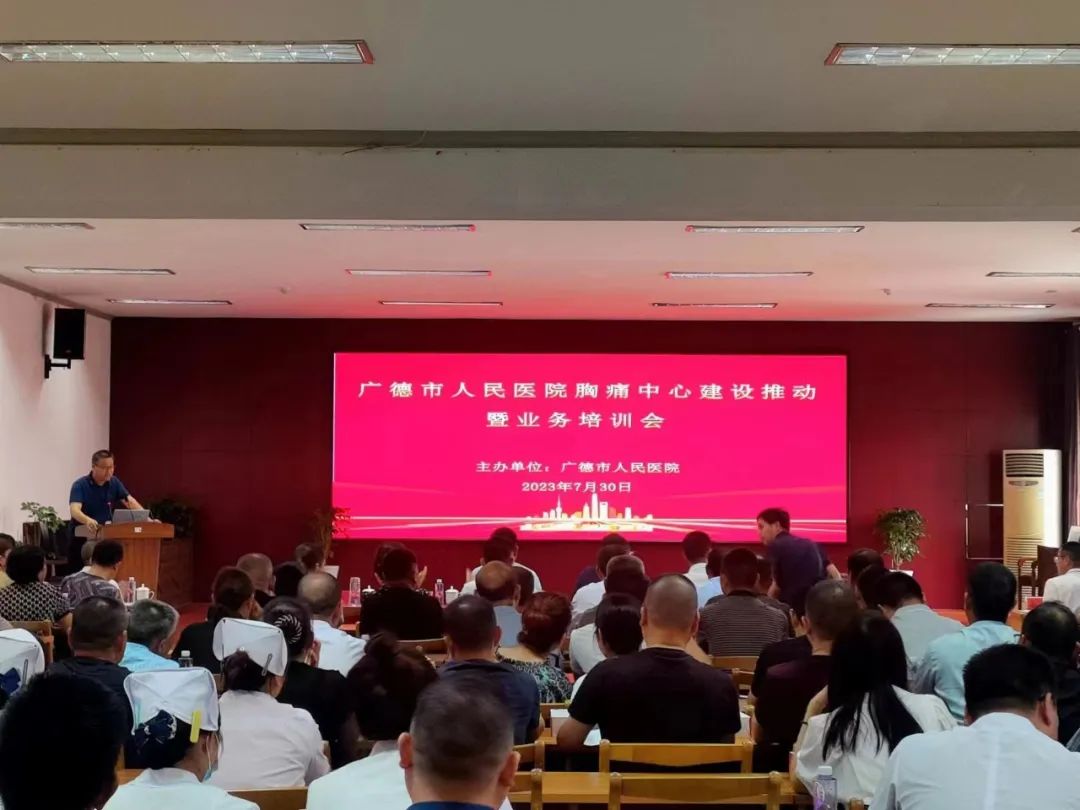 为加快推进我院胸痛中心的规范化建设,7月30日下午,我院举行了胸痛中心建设推进会暨培训会。浙江大学医学院附属第二医院心血管内科副主任、主任医师李长岭,副主任医师徐其渊、市卫健委副主任解本建、我院领导