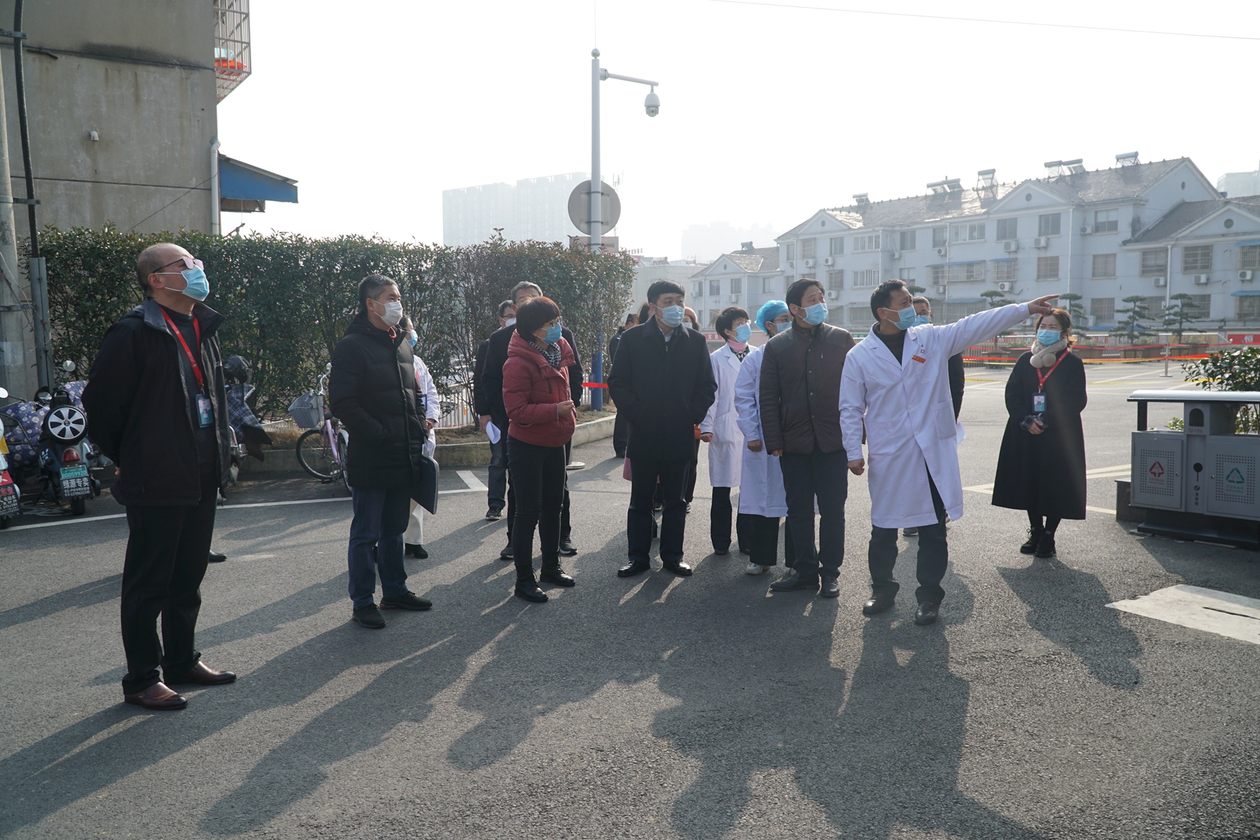 2020年2月19日清晨,还没有到上班时间,广德市人民医院门诊部门口体温检测岗出现了四位年轻“医护人员”的身影。他们头戴防护帽,身穿防护服,手拿额温枪,依次给进入医院的人员测量体温。他们是一群