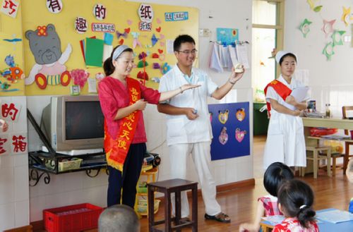 中秋节来临之际,我院党总支第一支部的党员们来到县特教学校,为孩子们送去了中秋月饼和文体用具。在特教学校优美的环境中,我院的党员们和孩子一起做互动,把卫生健康知识手把手得教给孩子们。 我院自