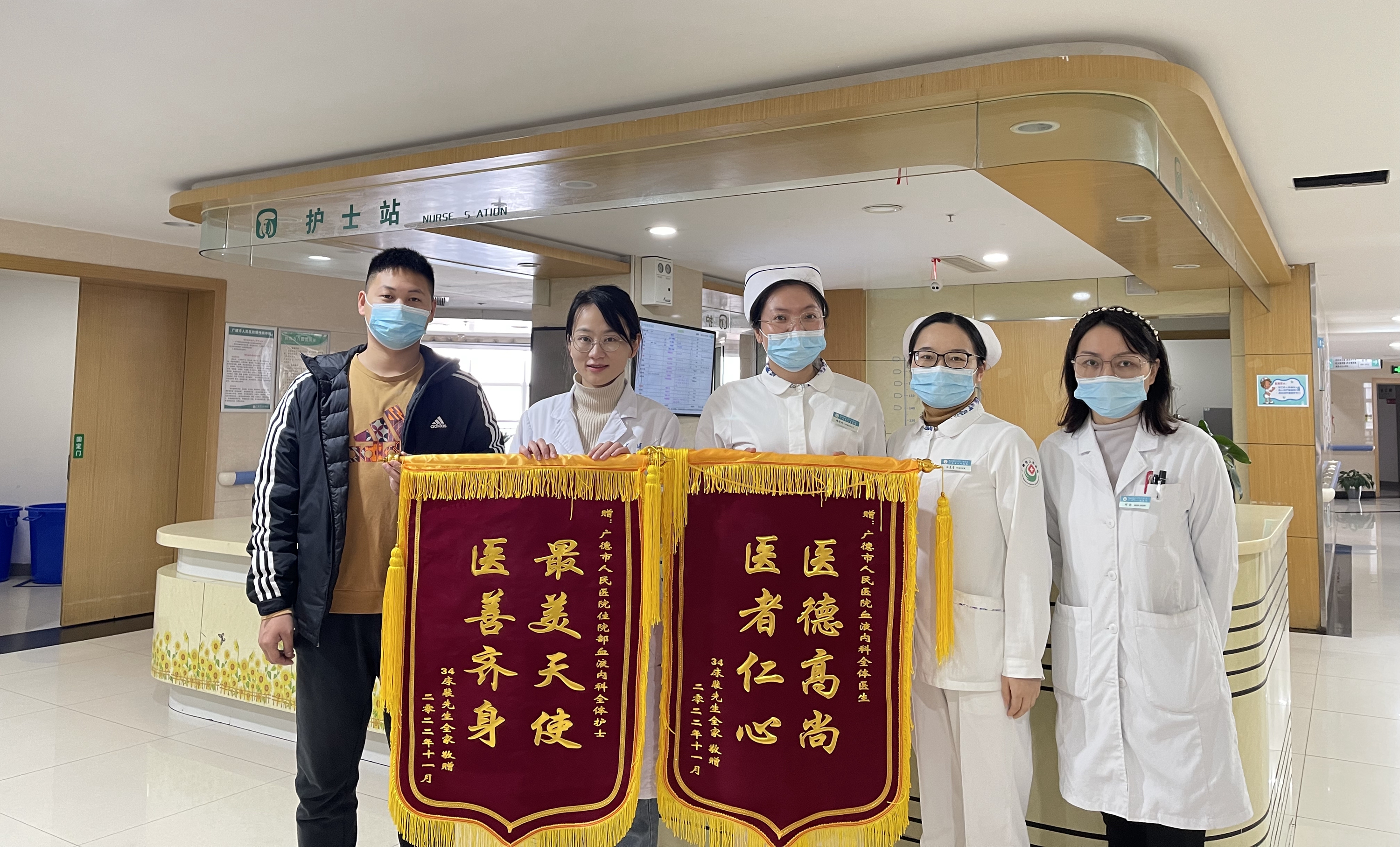 2022年11月24日,一位患者家属将两面锦旗送到了我院血液内科,以此来感谢血液内科医护人员的救治和关照。