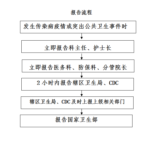 为加强突发公共卫生事件与传染病疫情信息监测报告管理工作,提供及时、科学的防治决策信息,有效预防、及时控制和消除突发公共卫生事件和传染病的危害,保障公众身体健康与生命安全,履行医疗机构和医务人员的责任和义务,根据《突发公共卫生事件与传染病疫情监测信息报告管理办法》、《国家突发公共卫生事件相关信息报告管理工作规范(试行)》制定我院突发公共卫生事件和传染病疫情信息监测报告的制度与流程。
