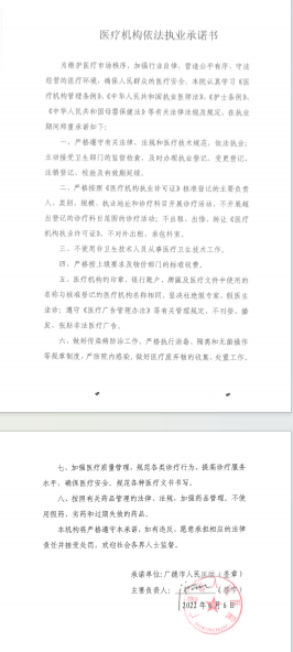 医疗机构依法执业承诺书