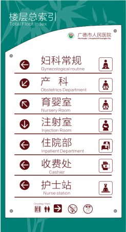各楼层病房标牌 | 亚克力四周抛光,切割面光滑平整 15mm白色正面印刷+左边色块5mm透明反面印刷+亚克力透明插槽 |