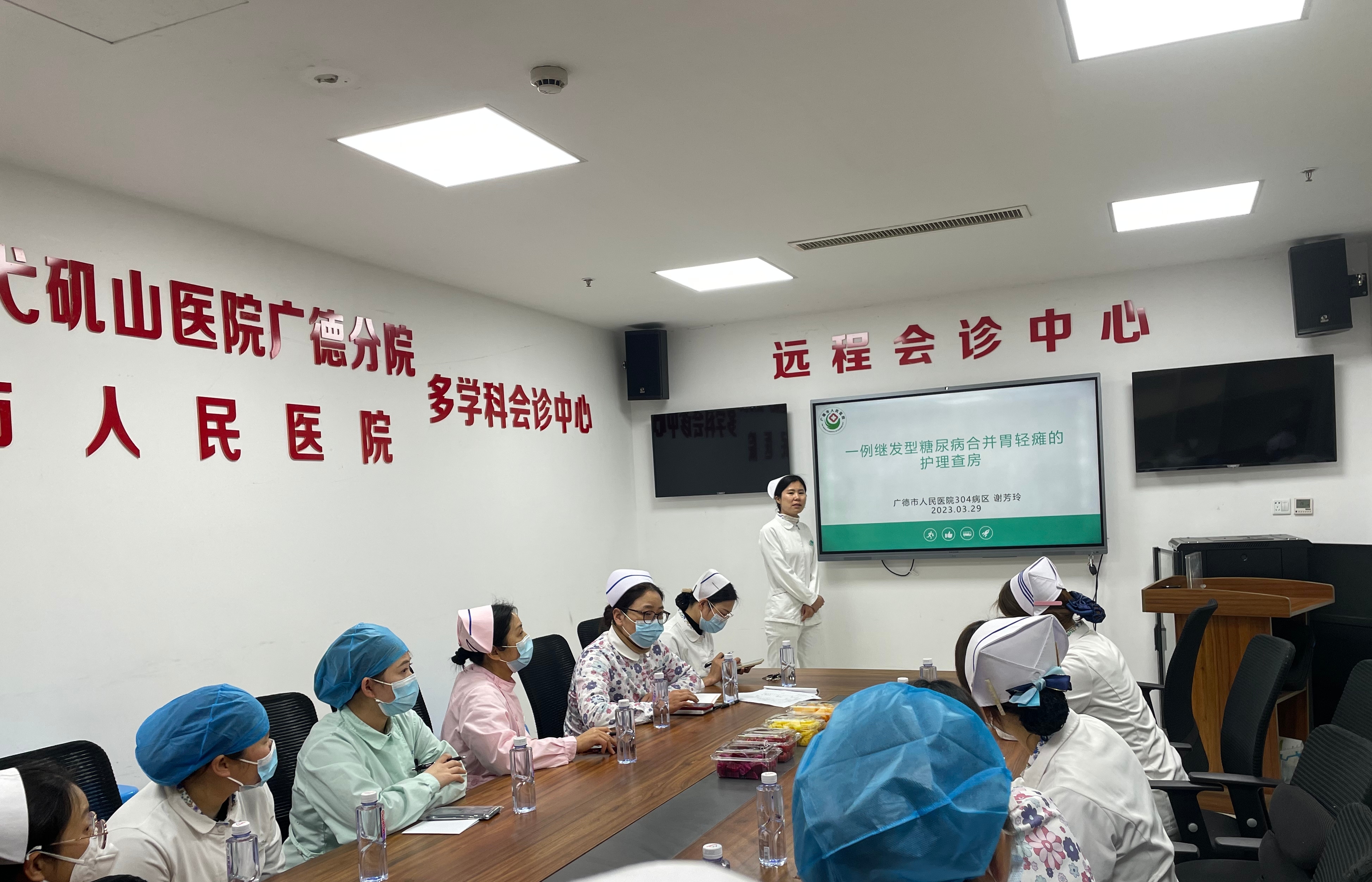查房后,各科护士长及老师结合本科实际情况,对于糖尿病患者的血糖控制,胃轻瘫患者的护理以及相关重难点问题进行了进一步的交流。