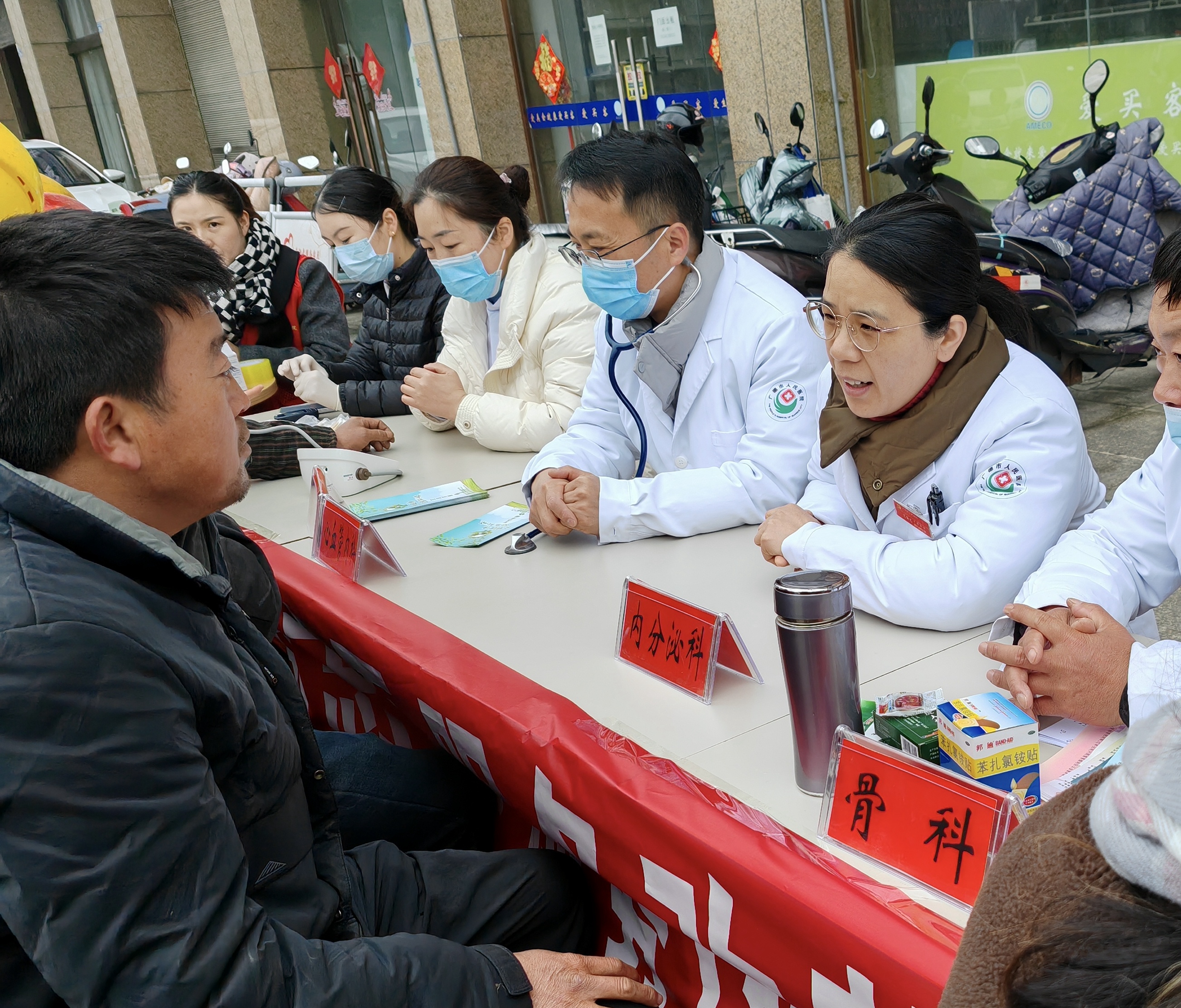 义诊团队耐心为群众问诊查体,测量血压、血糖,并根据不同病症提出科学合理的治疗方案和建议。