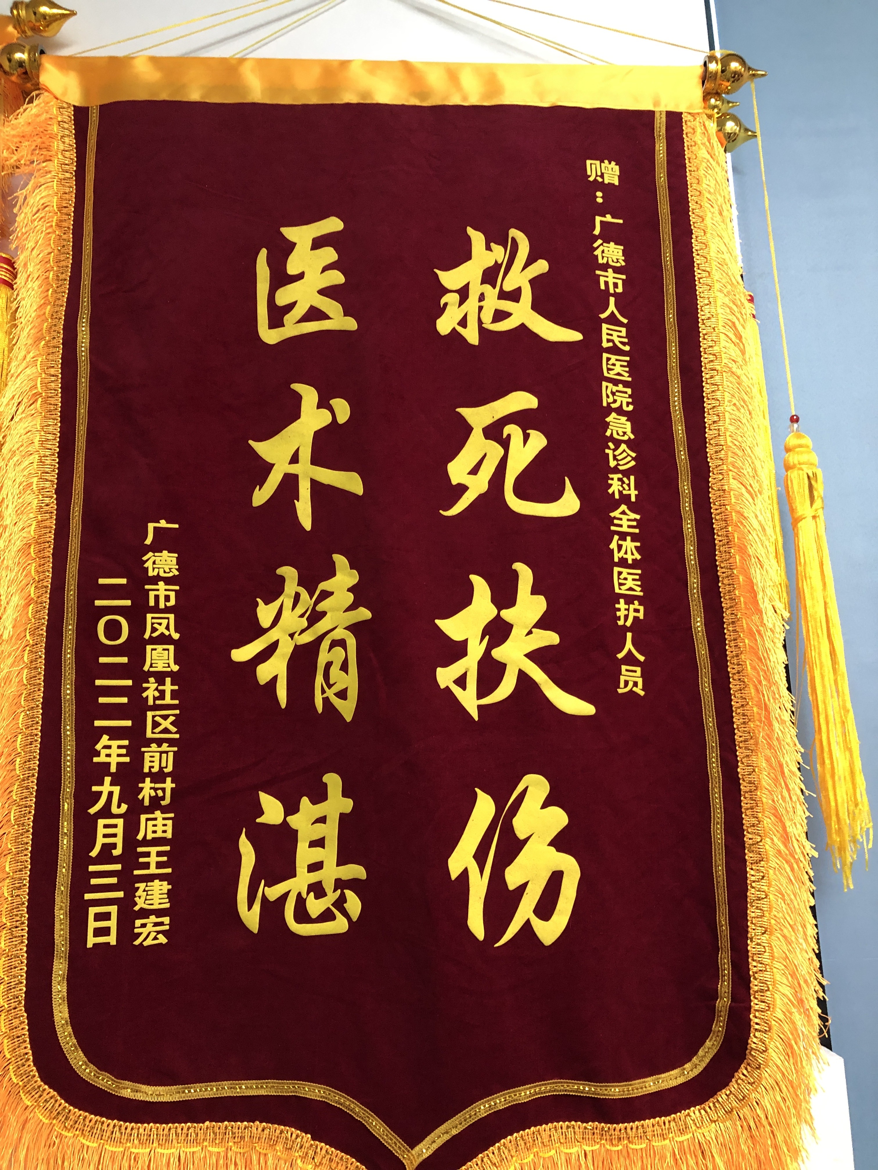 急诊医学科汪忠顺主任收到患者所赠锦旗一面