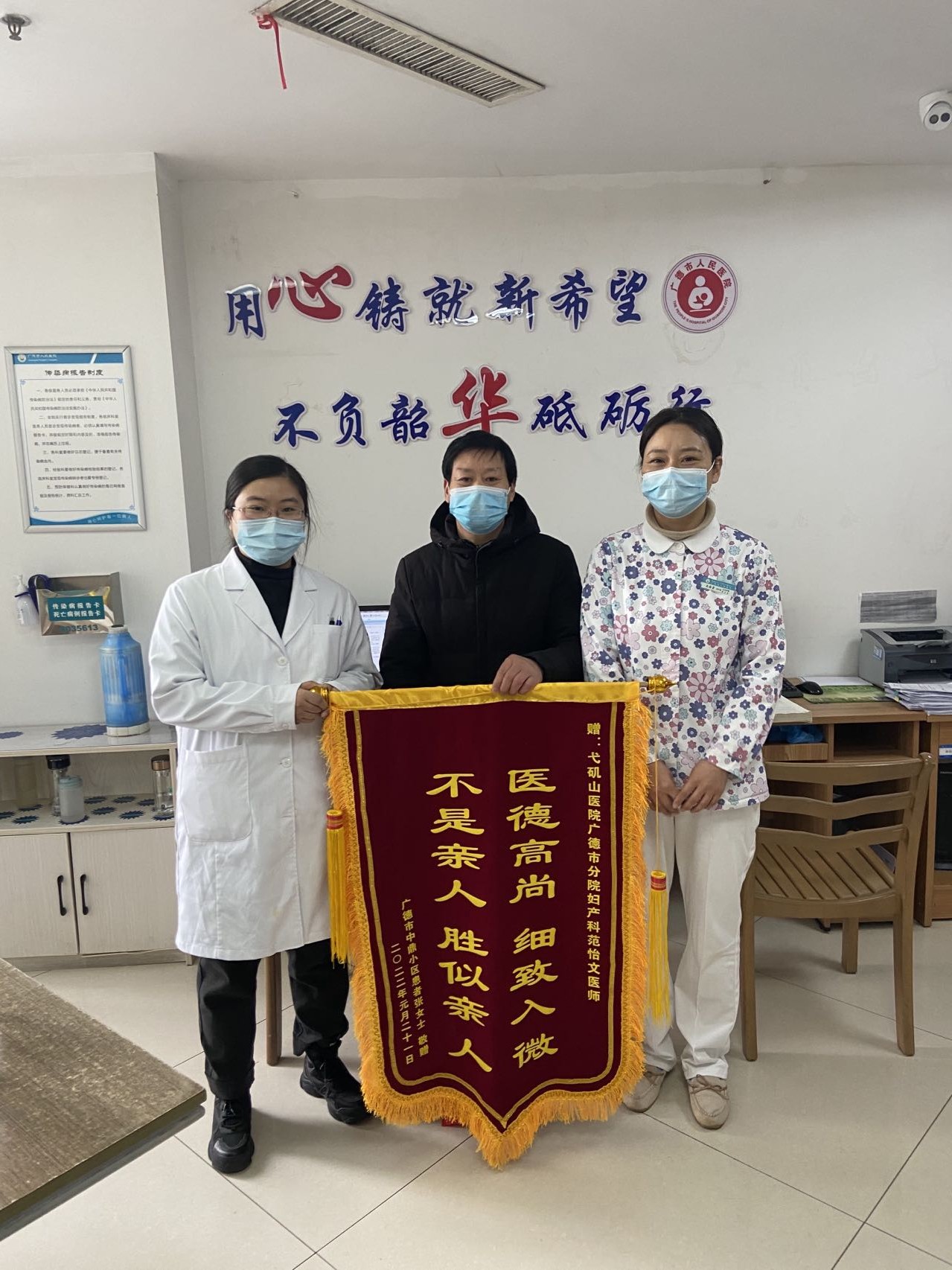 2022年1月,妇产科收到患者所赠锦旗一面。
