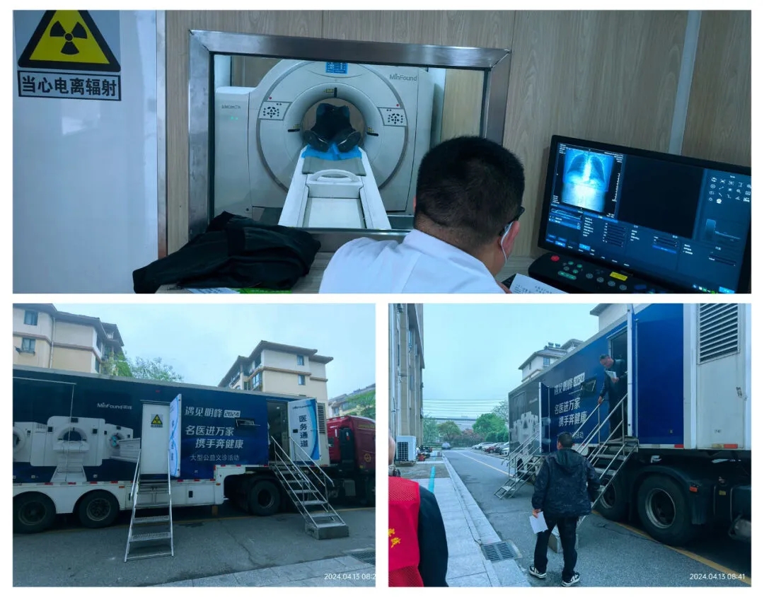此次义诊跟随专家们一起到来的还有一台医疗移动CT车,提供免费检查,检查影像信息将第一时间通过高速5G网络传送到义诊现场终端,专家能快速给出检测报告和初步诊疗意见。八十多位前来就诊的人员通过移动CT做了胸部疾病筛查。
