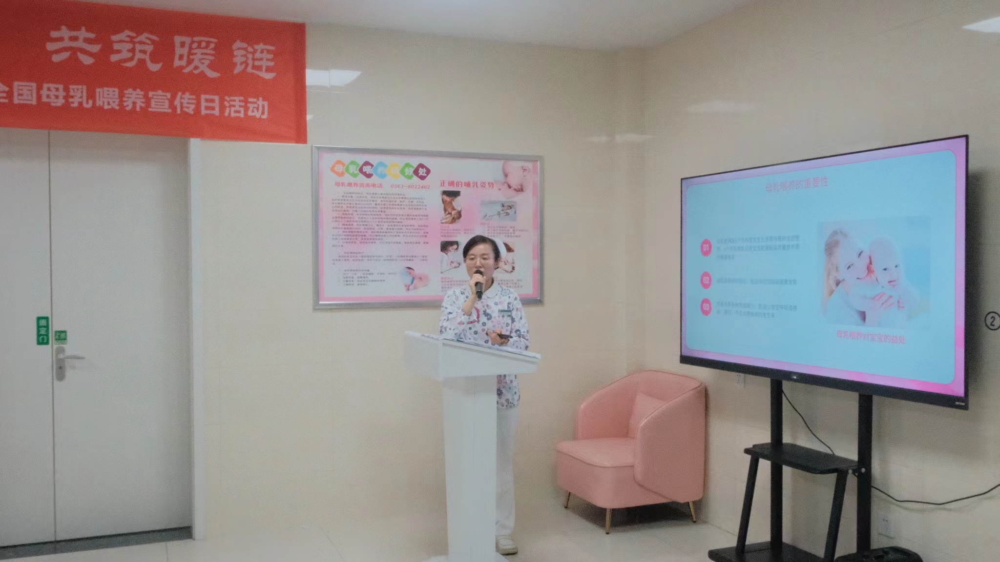 活动开始,护士长吴海霞致欢迎词并为大家介绍了本次活动的流程及意义,结合专业知识,妇产科主管护师陈芳向大家讲解了关于母乳喂养好处、姿势及母乳喂养碰到的误区等相关知识,为母婴家庭传递母乳喂养信息,帮助父母实现成功母乳喂养的愿望。